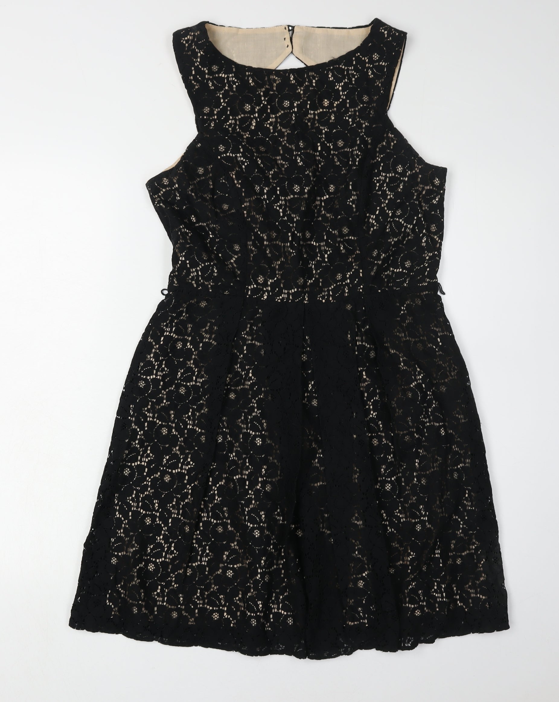 Oasis Women's Black A-Line Floral Lace Dress Size 12