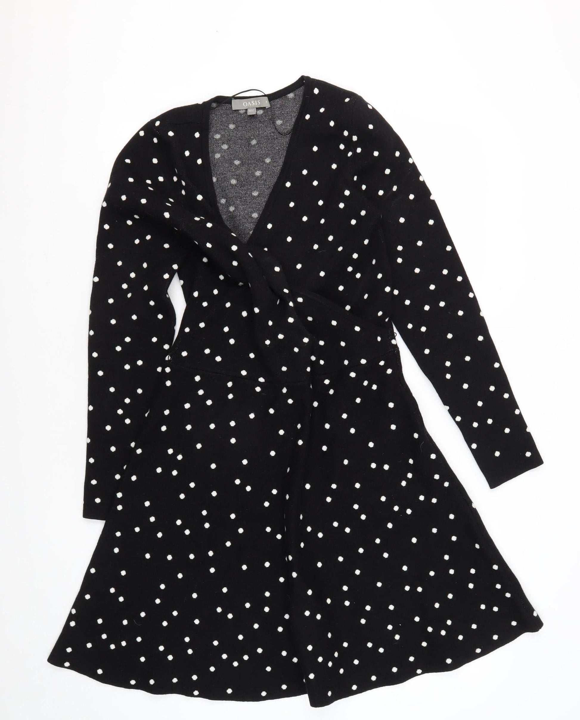 Oasis Women's Black A-Line Polka Dot Dress Small