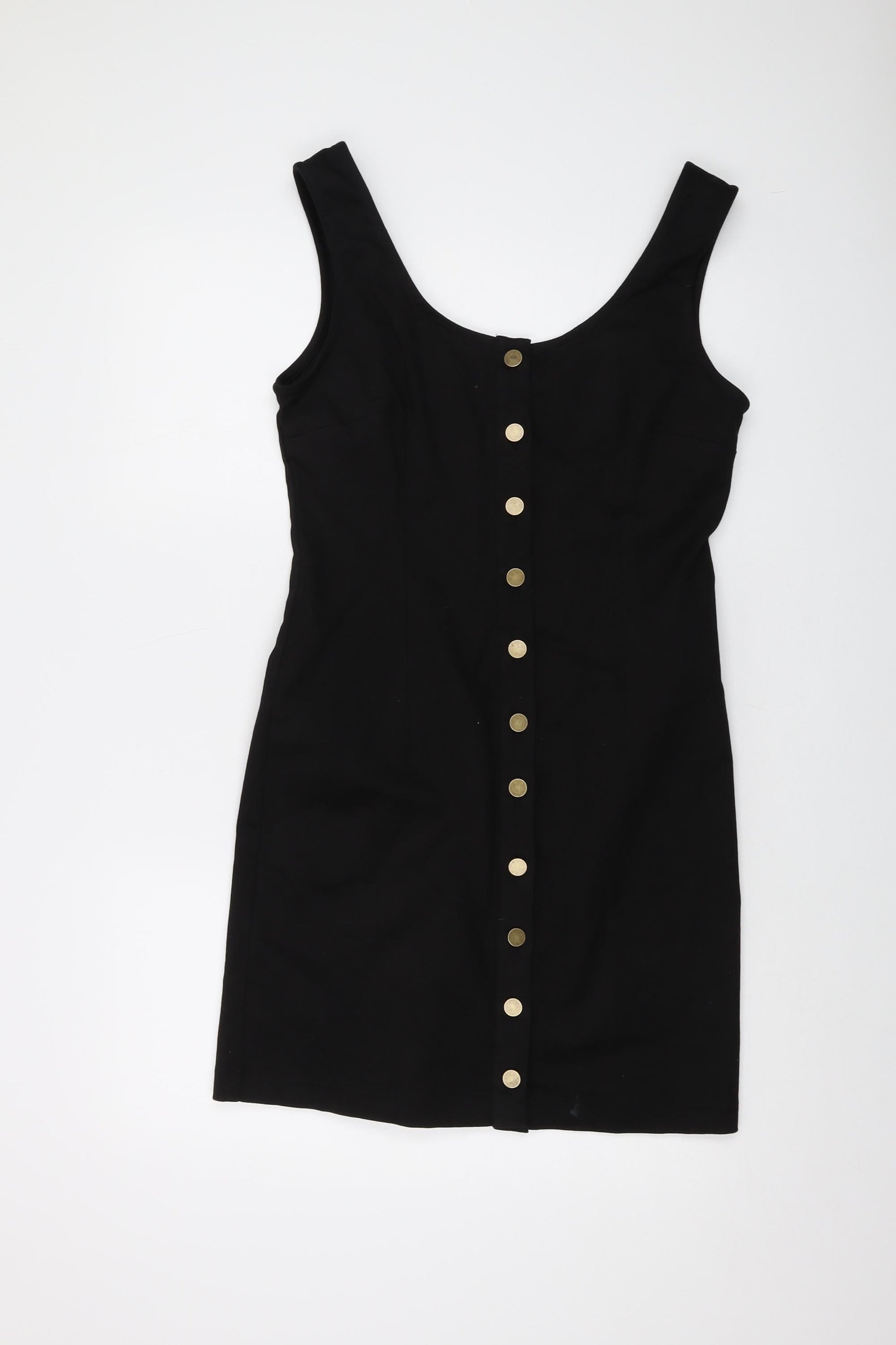 Oasis Womens Black Cotton Mini Size 12 Round Neck Button