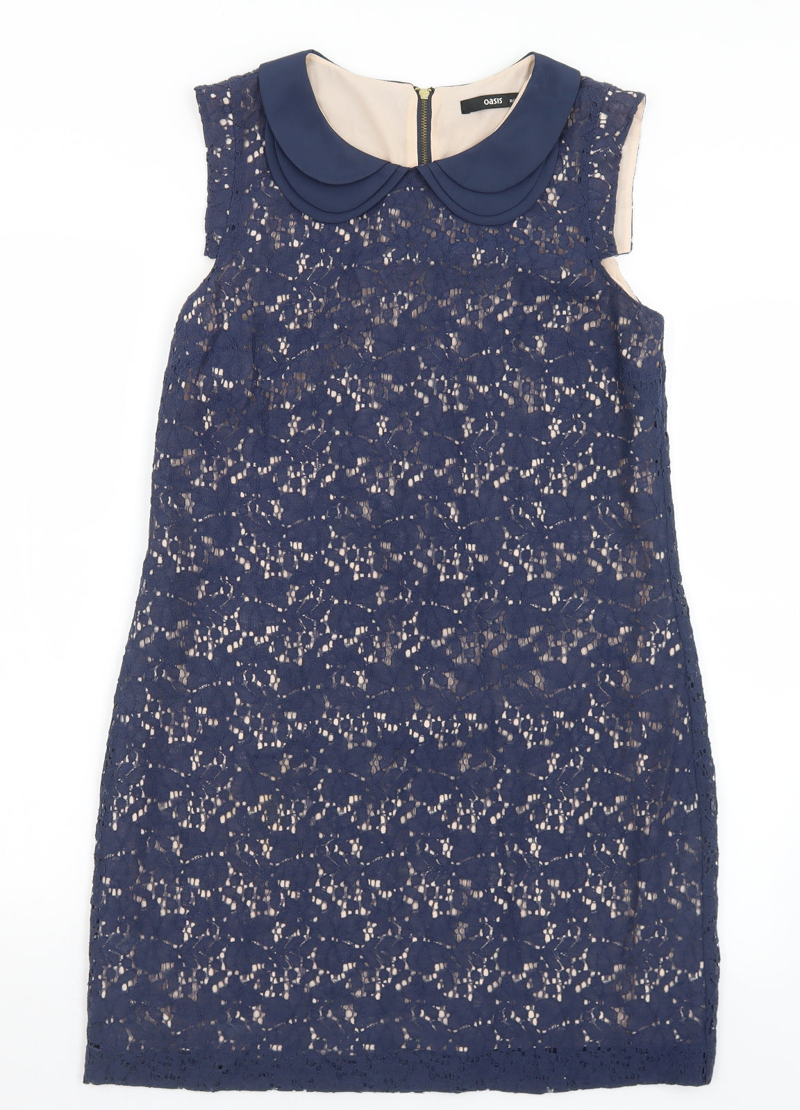 Oasis Womens Black Cotton Pencil Dress Size 12 Collared Zip