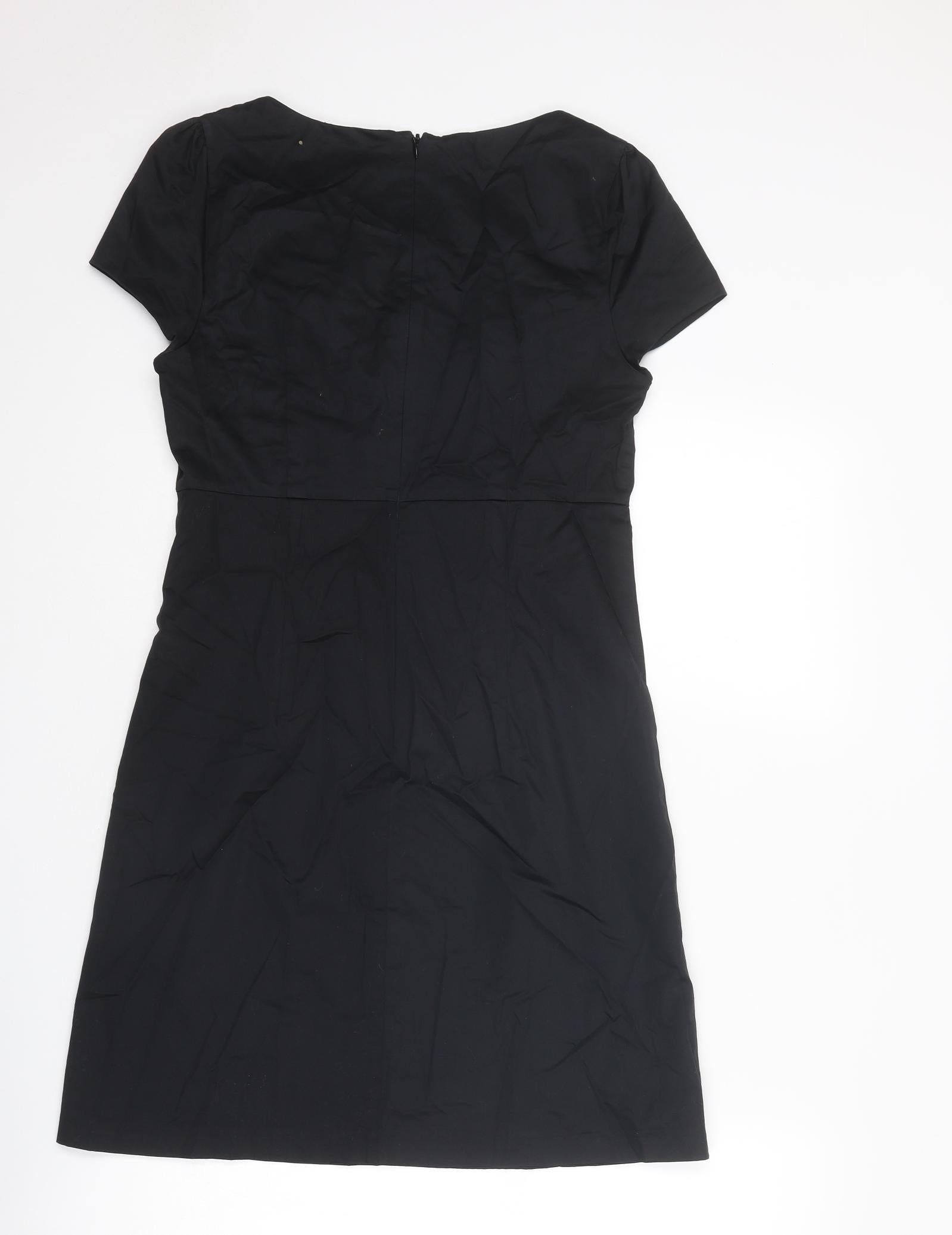 Oasis Womens Black Cotton Shift Size 10 Boat Neck Zip - Embellished