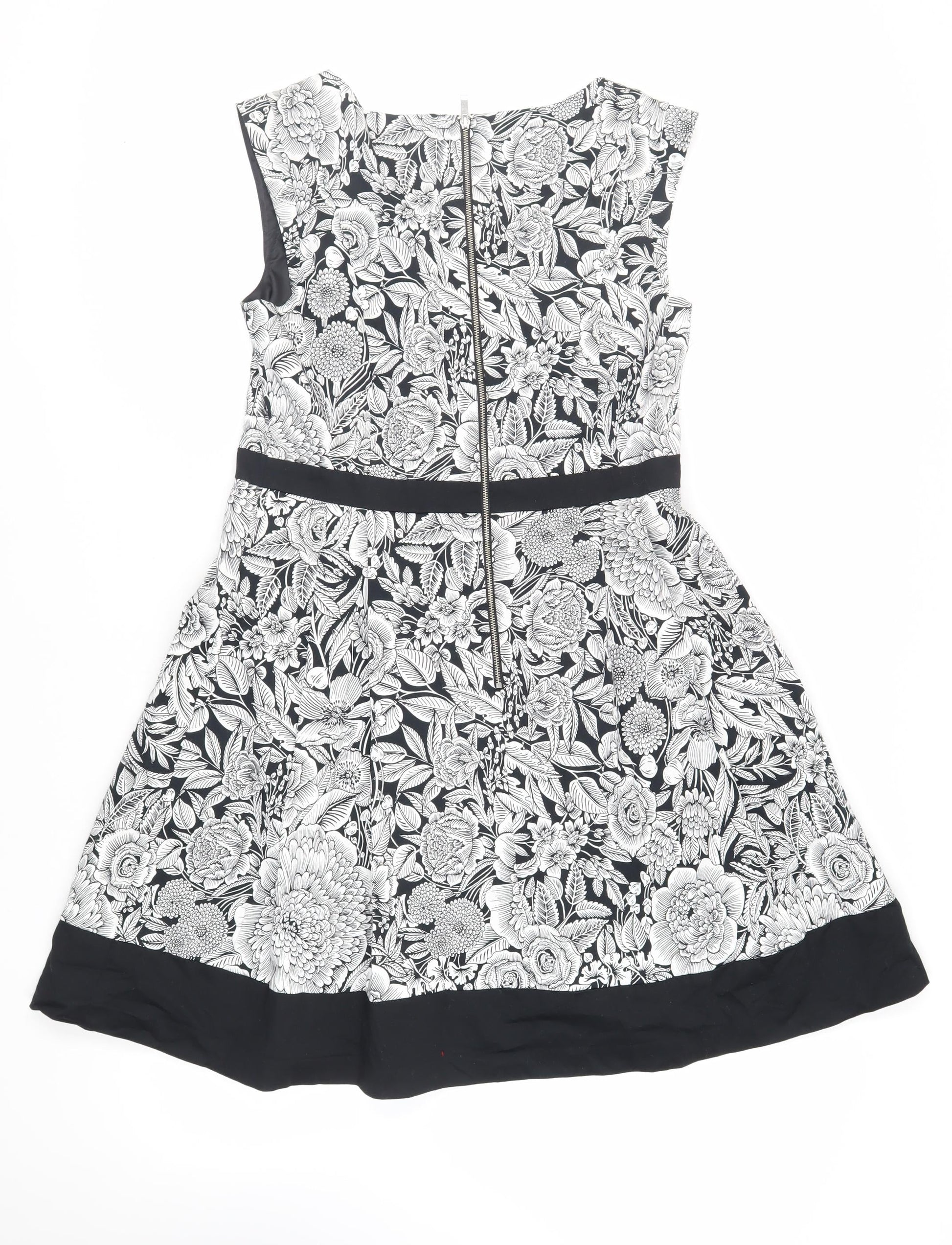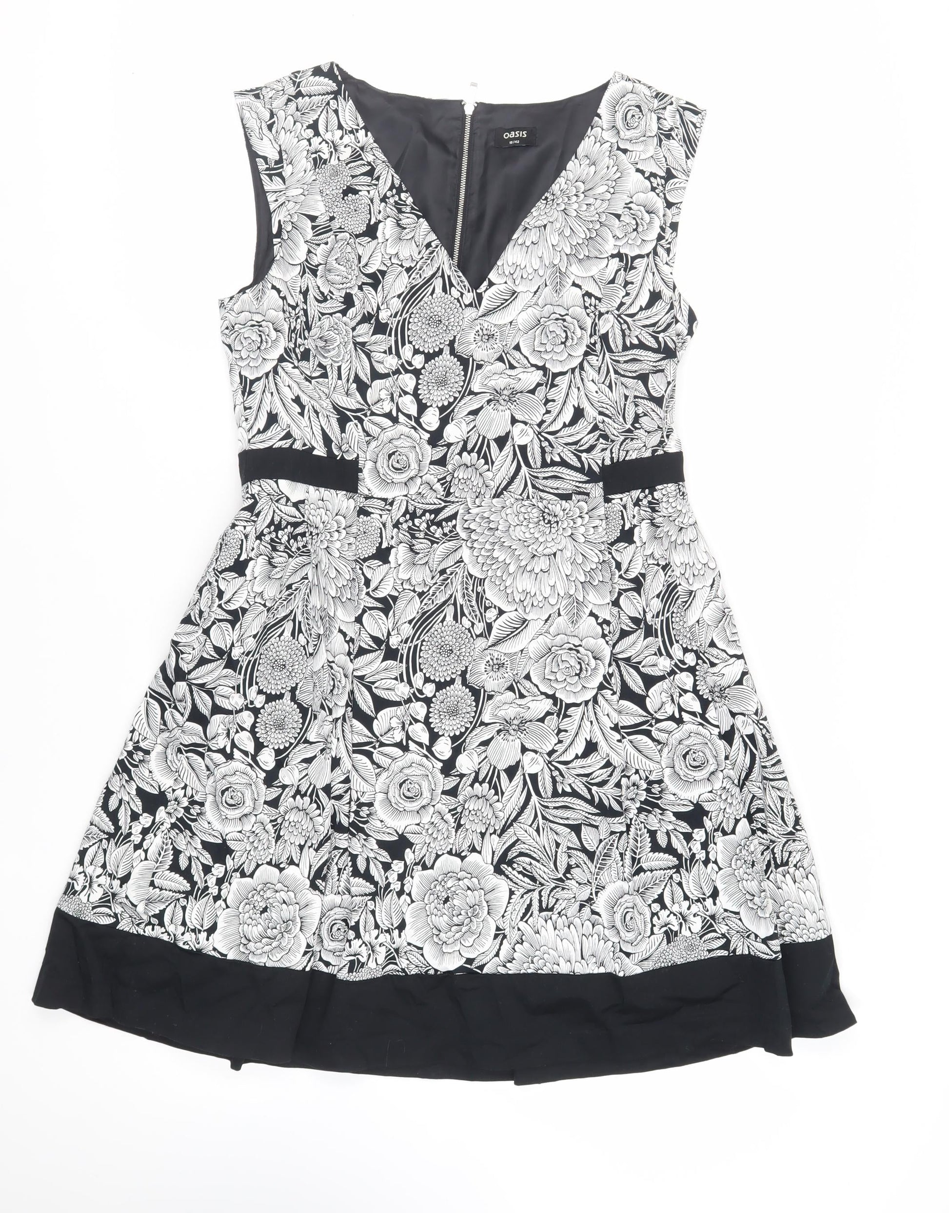Oasis Womens Black Floral Cotton Fit & Flare Size 16 V-Neck Zip