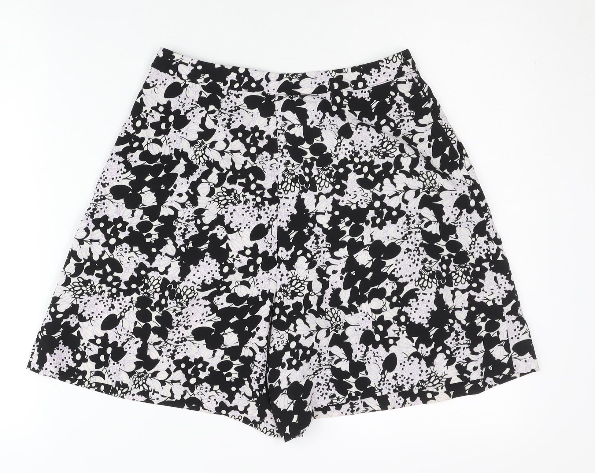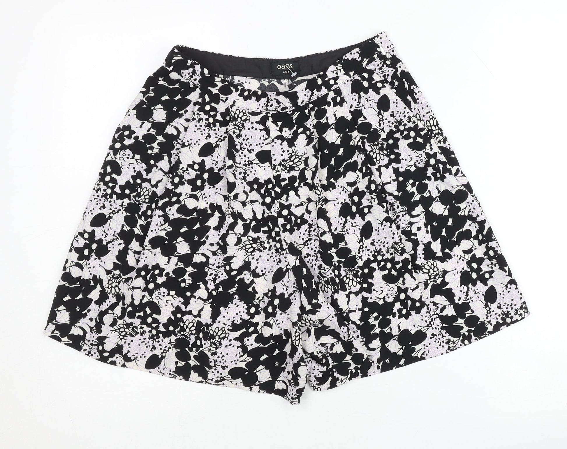 Oasis Womens Black Floral Culotte Shorts Size 8 Pleated Summer