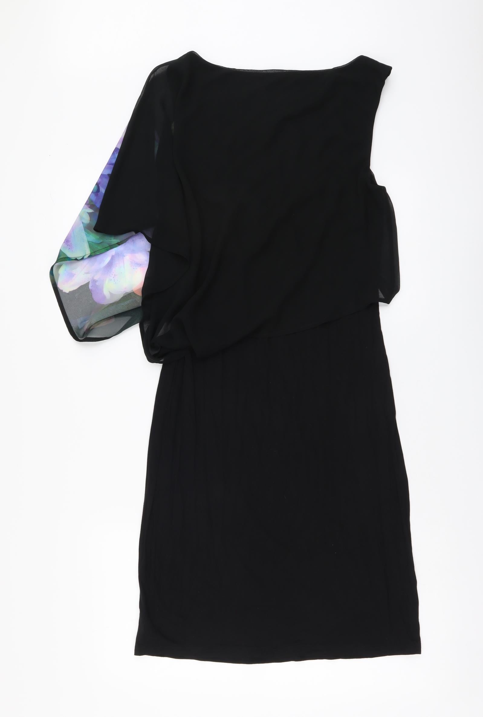 Oasis Womens Black Floral Polyester Bodycon Size S Round Neck Pullover