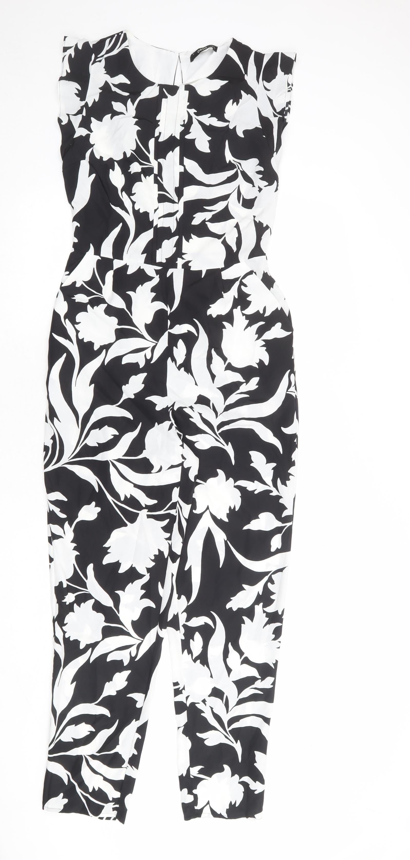 Oasis Womens Black Floral Polyester Jumpsuit One-Piece Size 8 L28 in Button