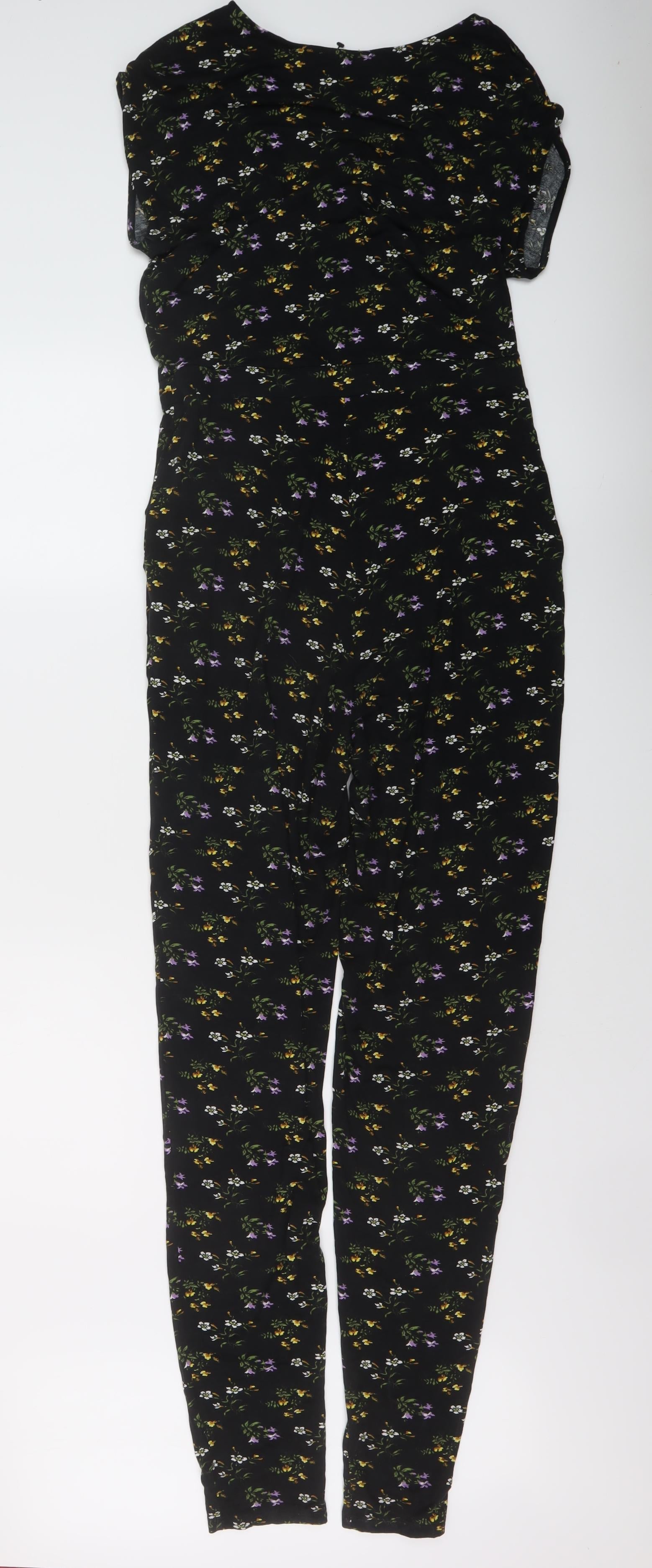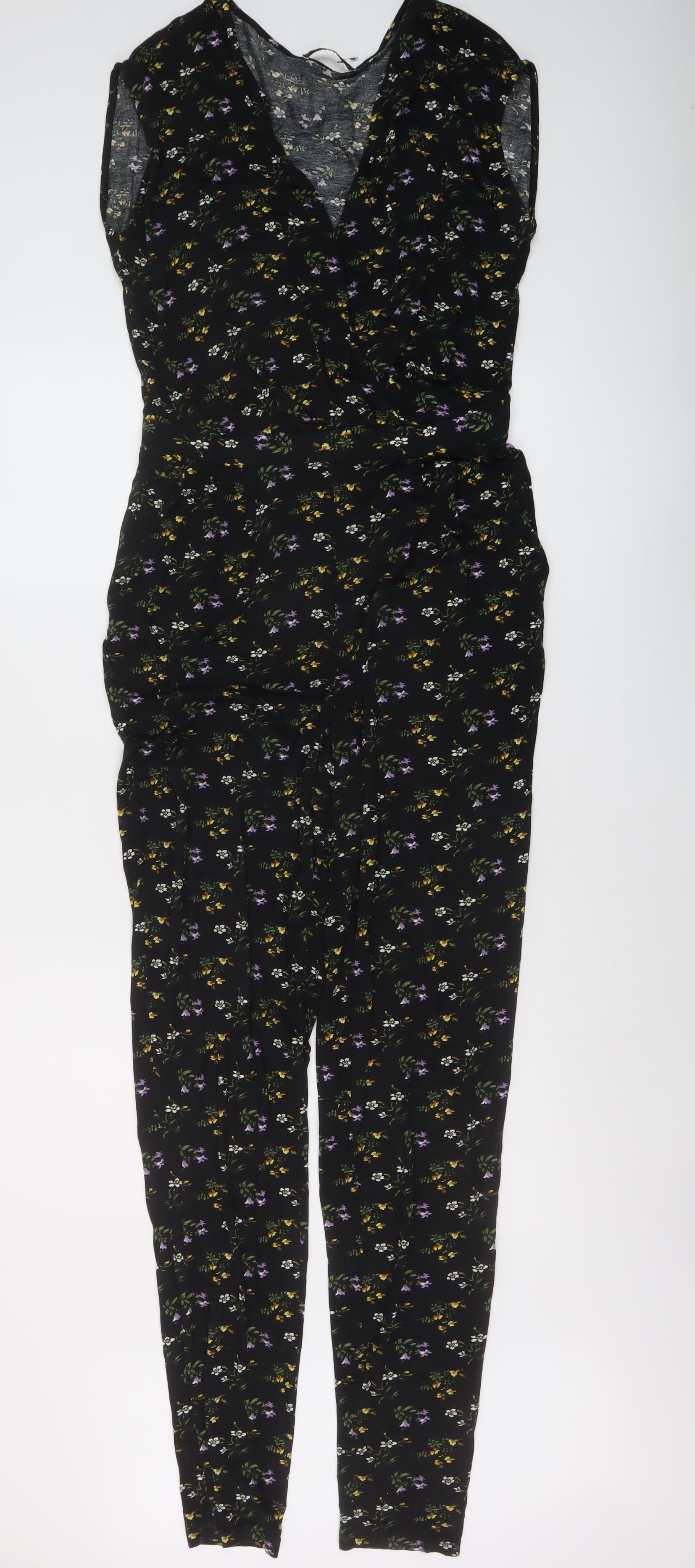 Oasis Womens Black Floral Viscose Jumpsuit One-Piece Size M Pullover