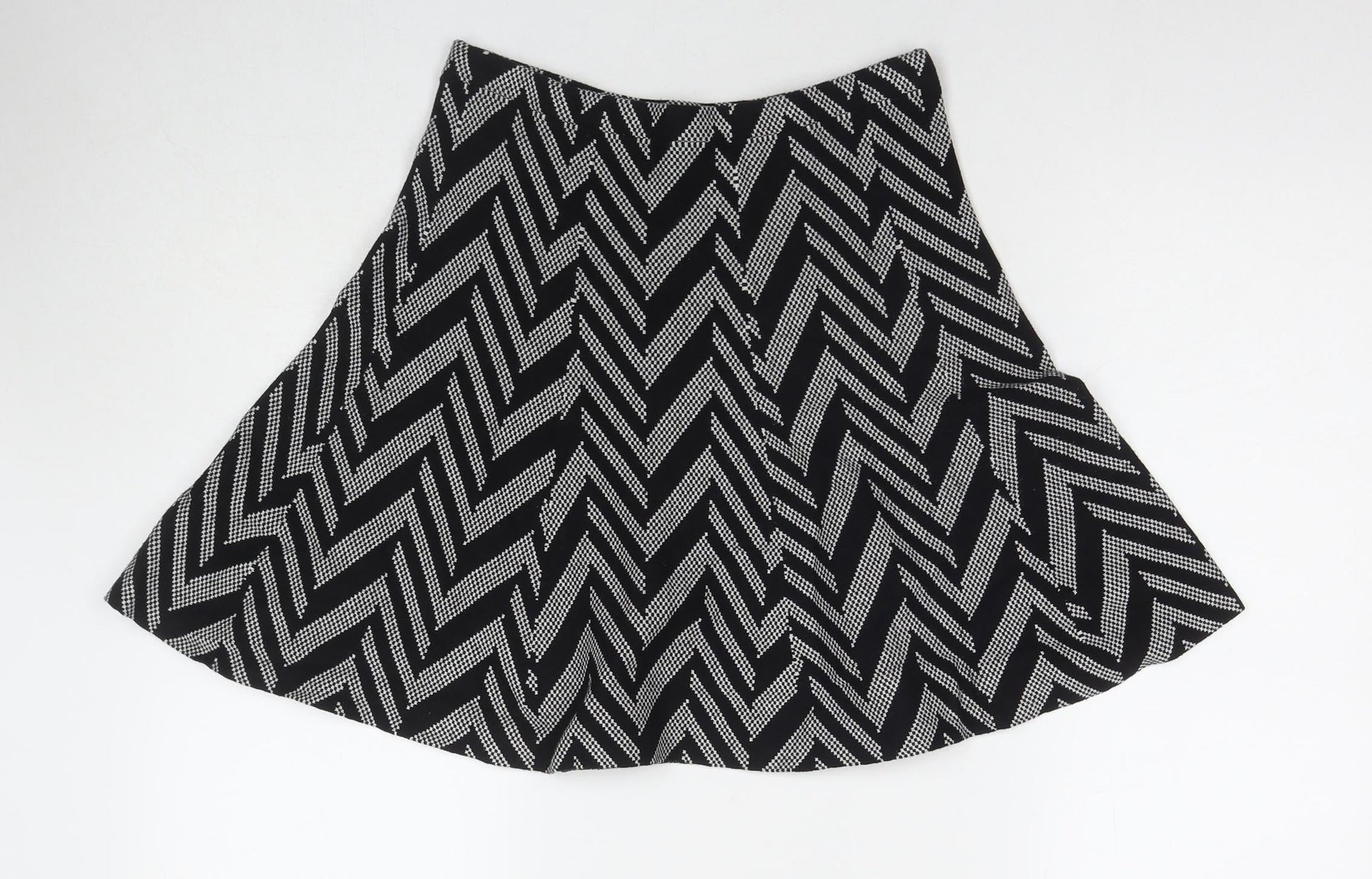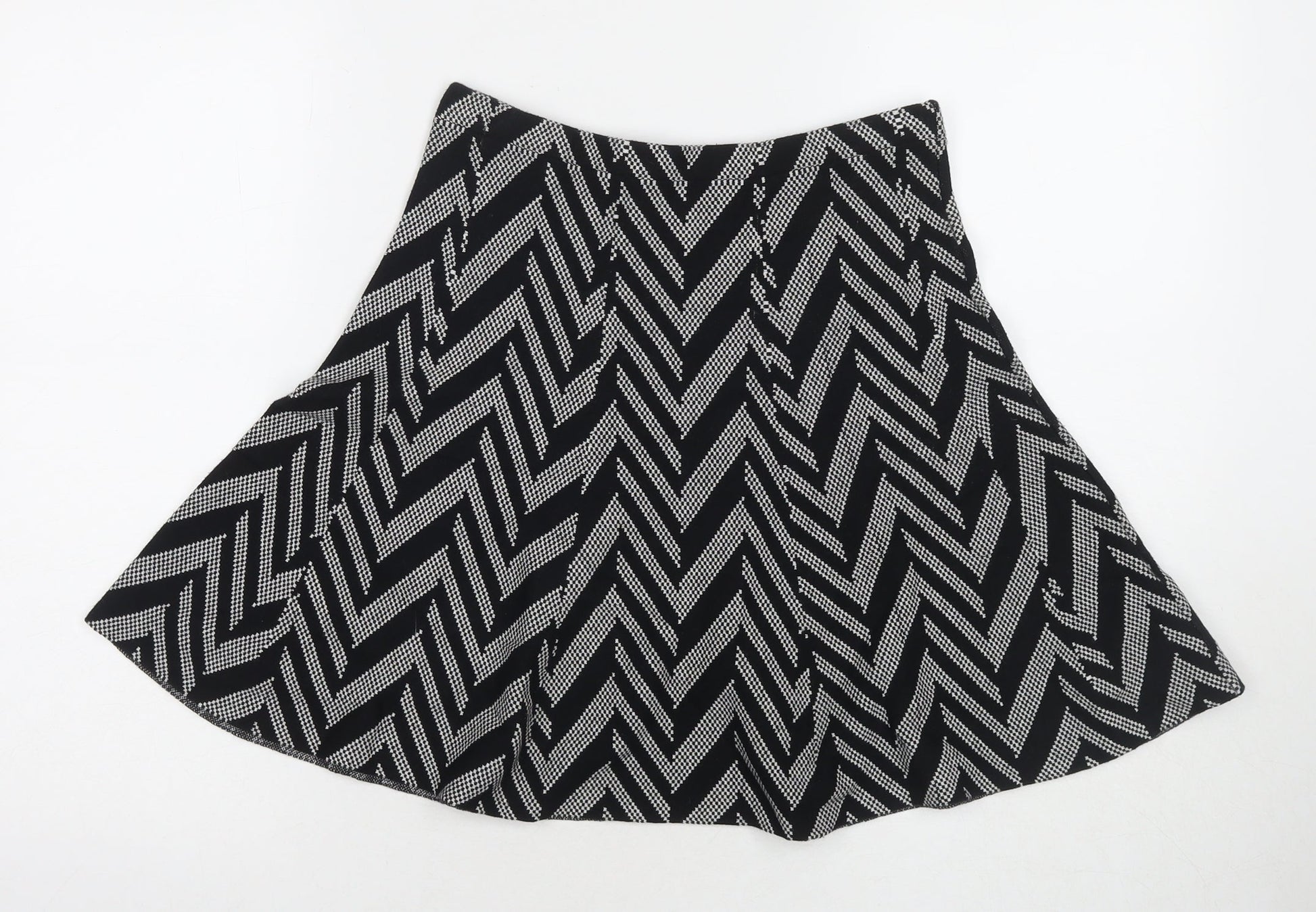 Oasis Womens Black Geometric Cotton Skater Skirt Size S