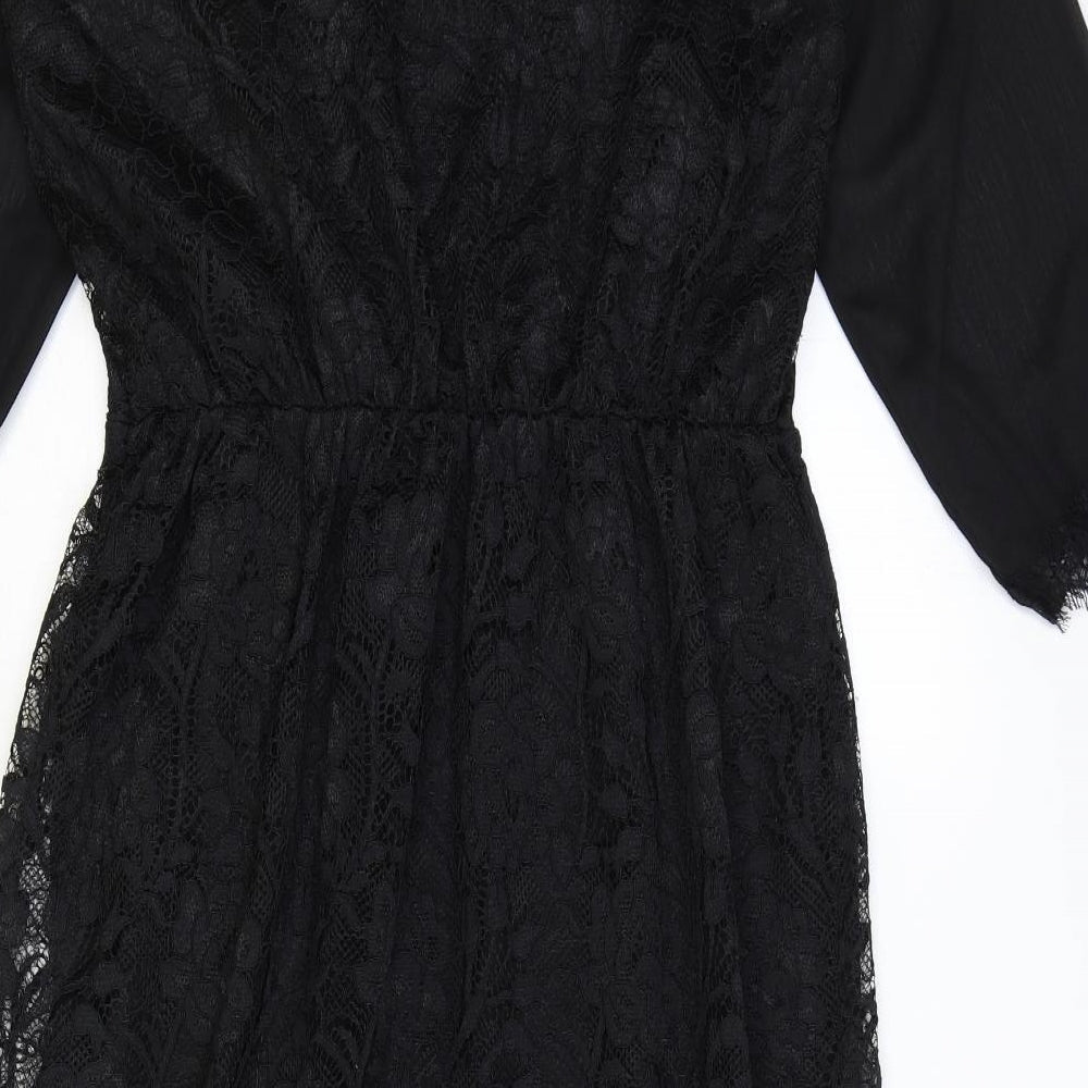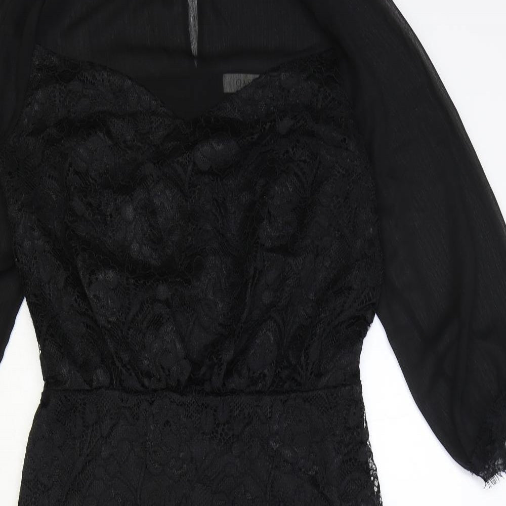Oasis Womens Black Geometric Polyester A-Line Size M Round Neck Button
