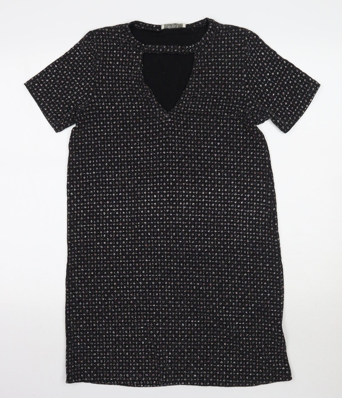 Oasis Womens Black Geometric Rayon A-Line Size S