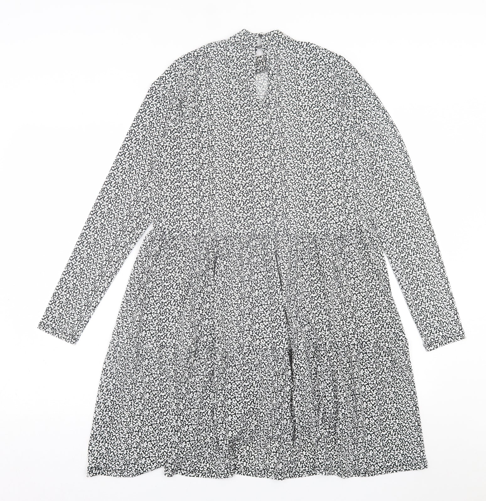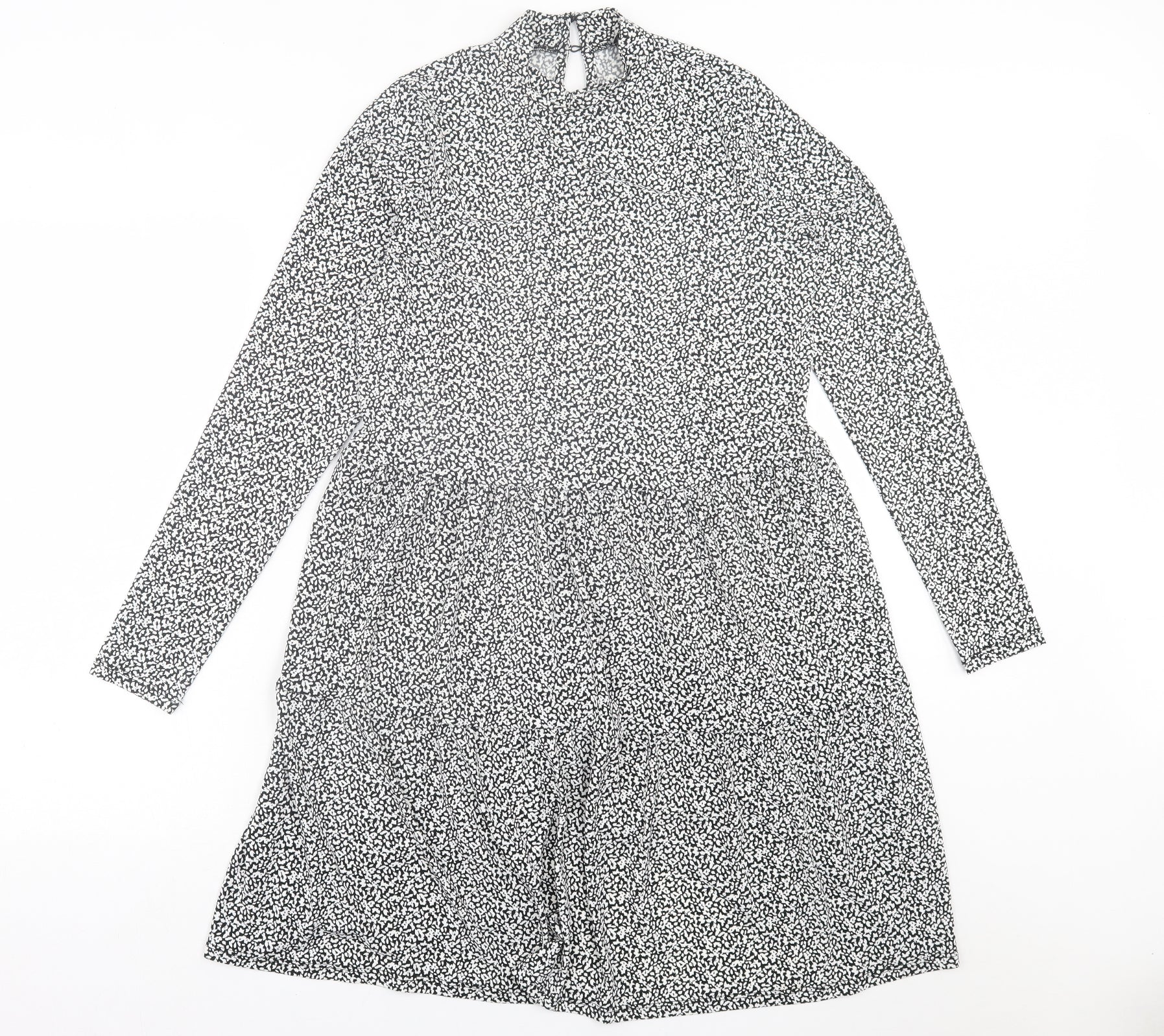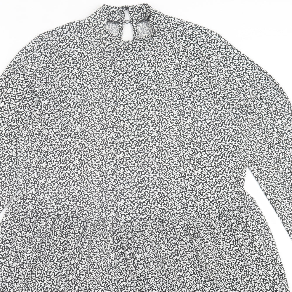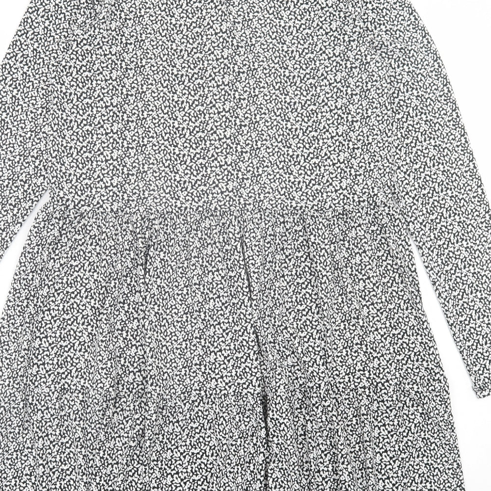 Oasis Womens Black Geometric Viscose A-Line Size S Crew Neck Button
