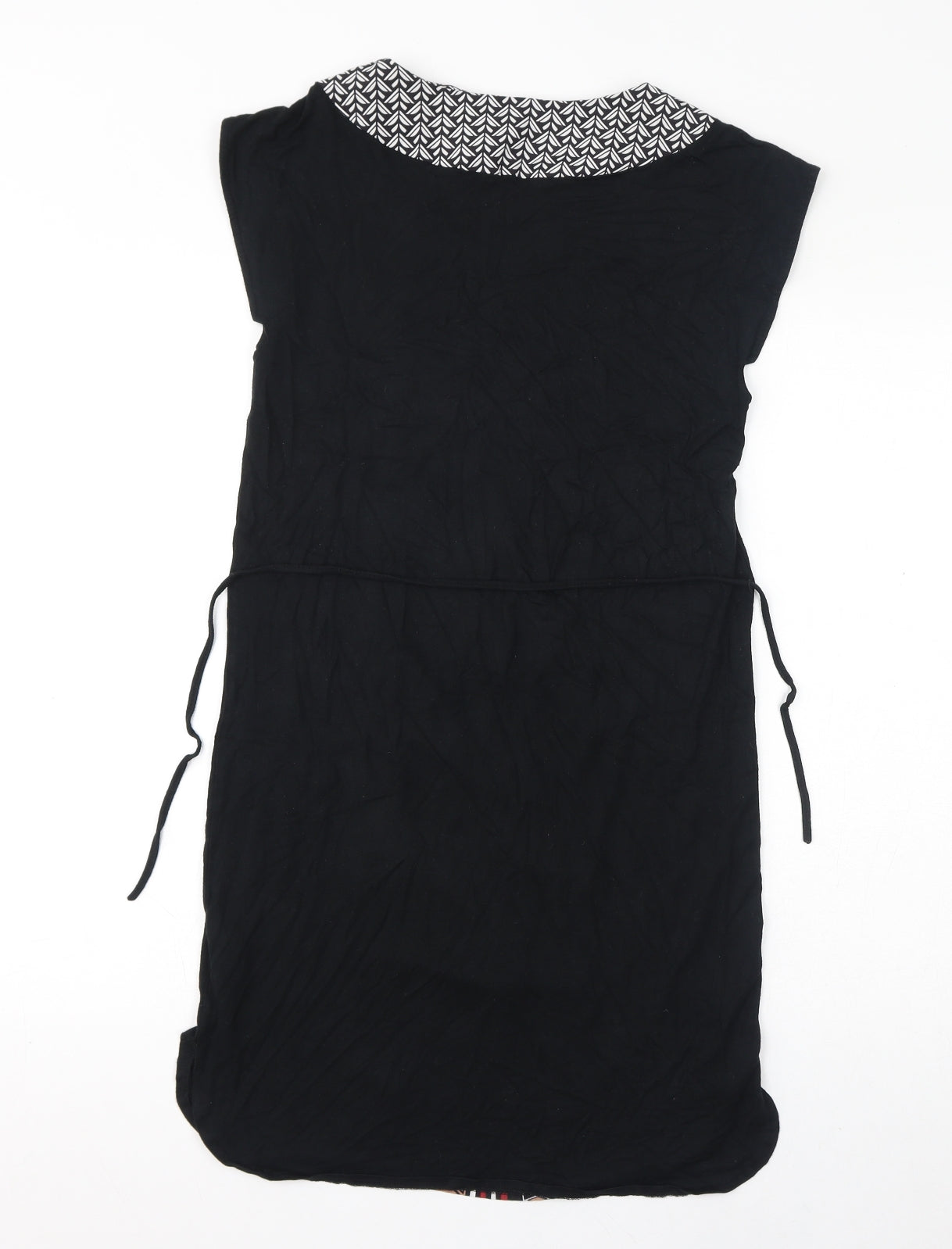 Oasis Womens Black Geometric Viscose T-Shirt Dress Size XS Round Neck Pullover