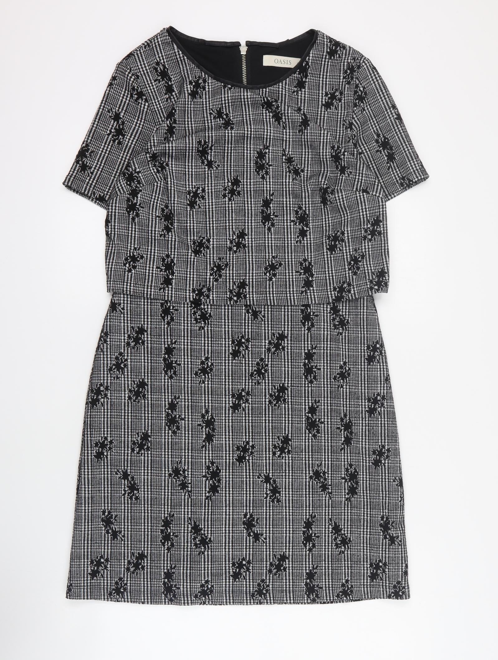Oasis Womens Black Houndstooth Polyester A-Line Size S Round Neck Zip