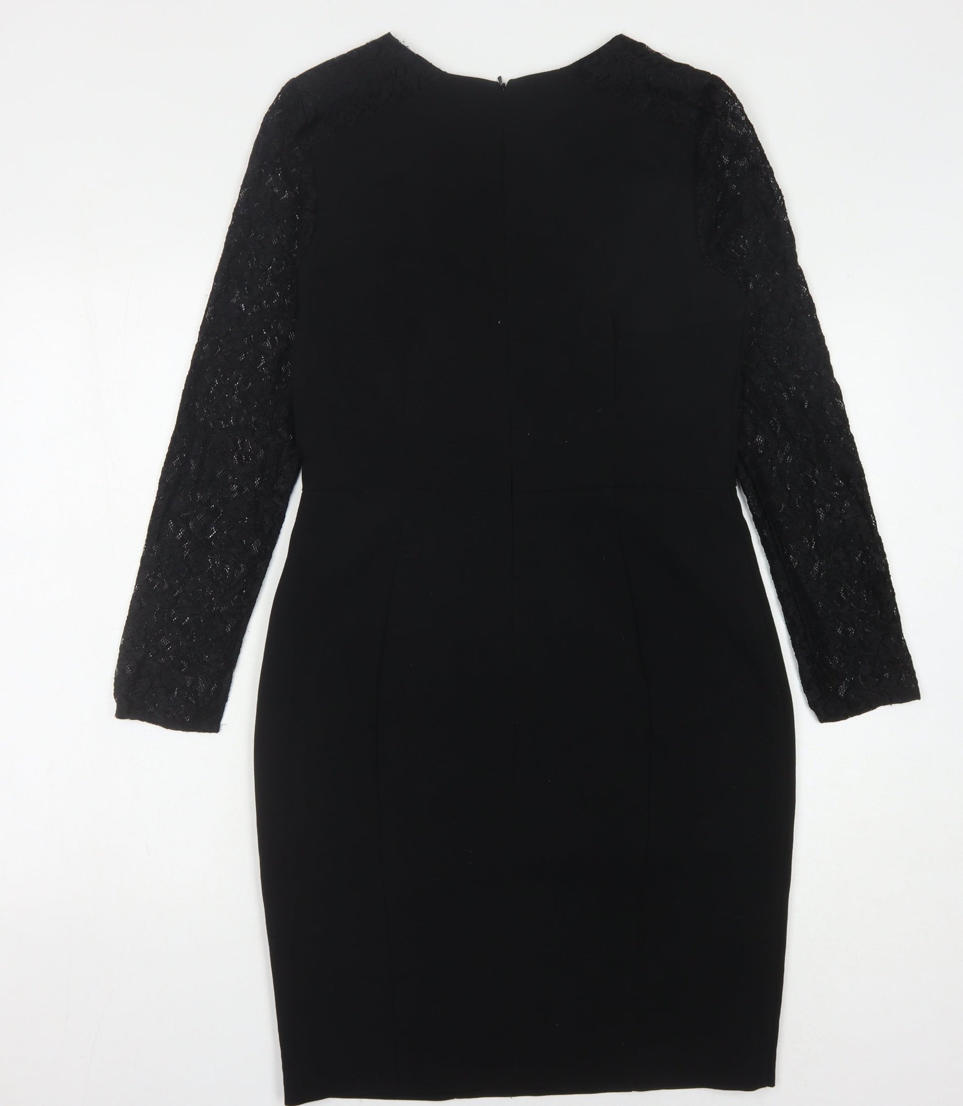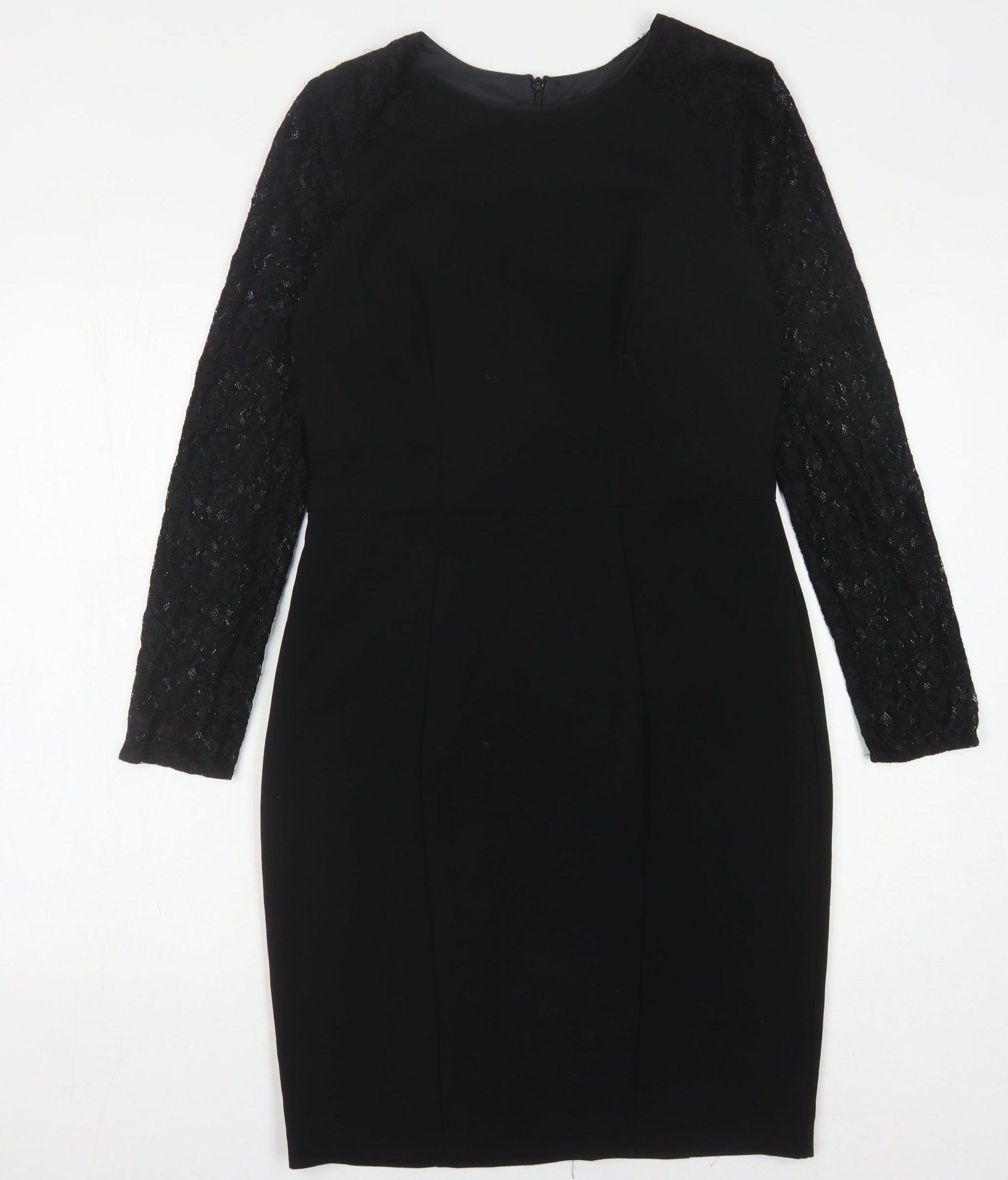 Oasis Women's Black Lace Long Sleeve Dress, Size 12