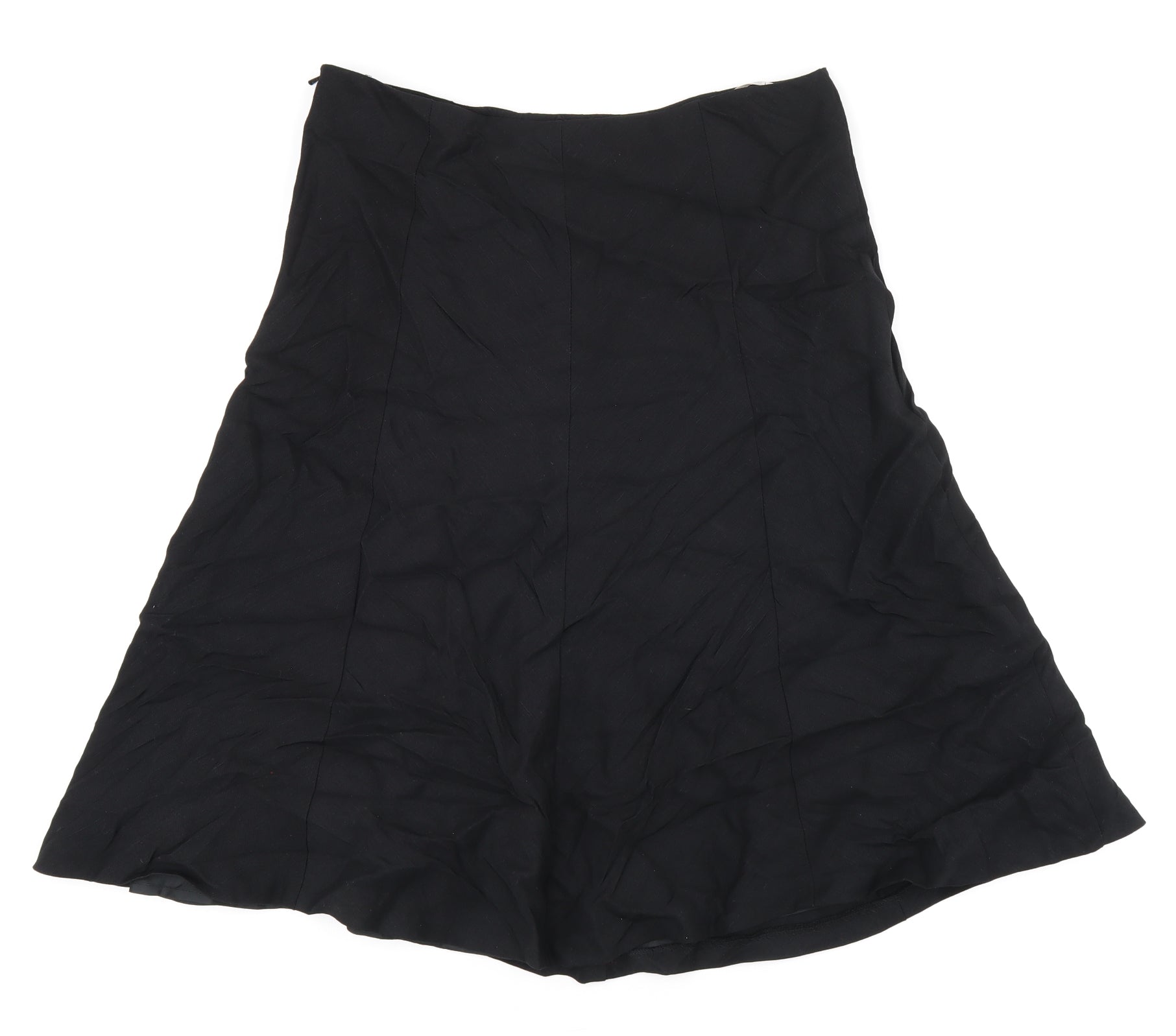 Oasis Womens Black Linen Swing Skirt Size 12 Zip