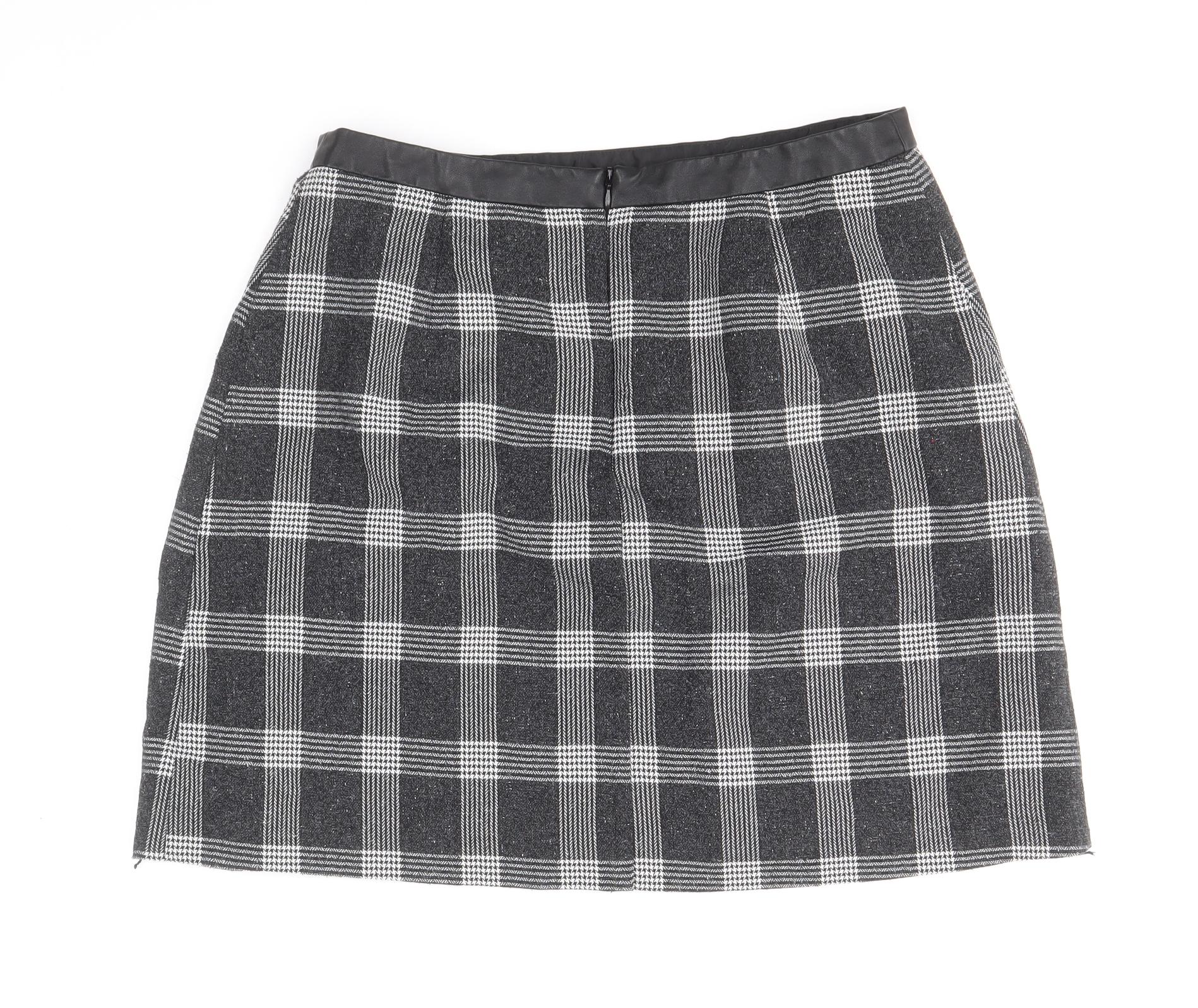 Oasis Womens Black Plaid Polyester Mini Skirt Size 12 Zip