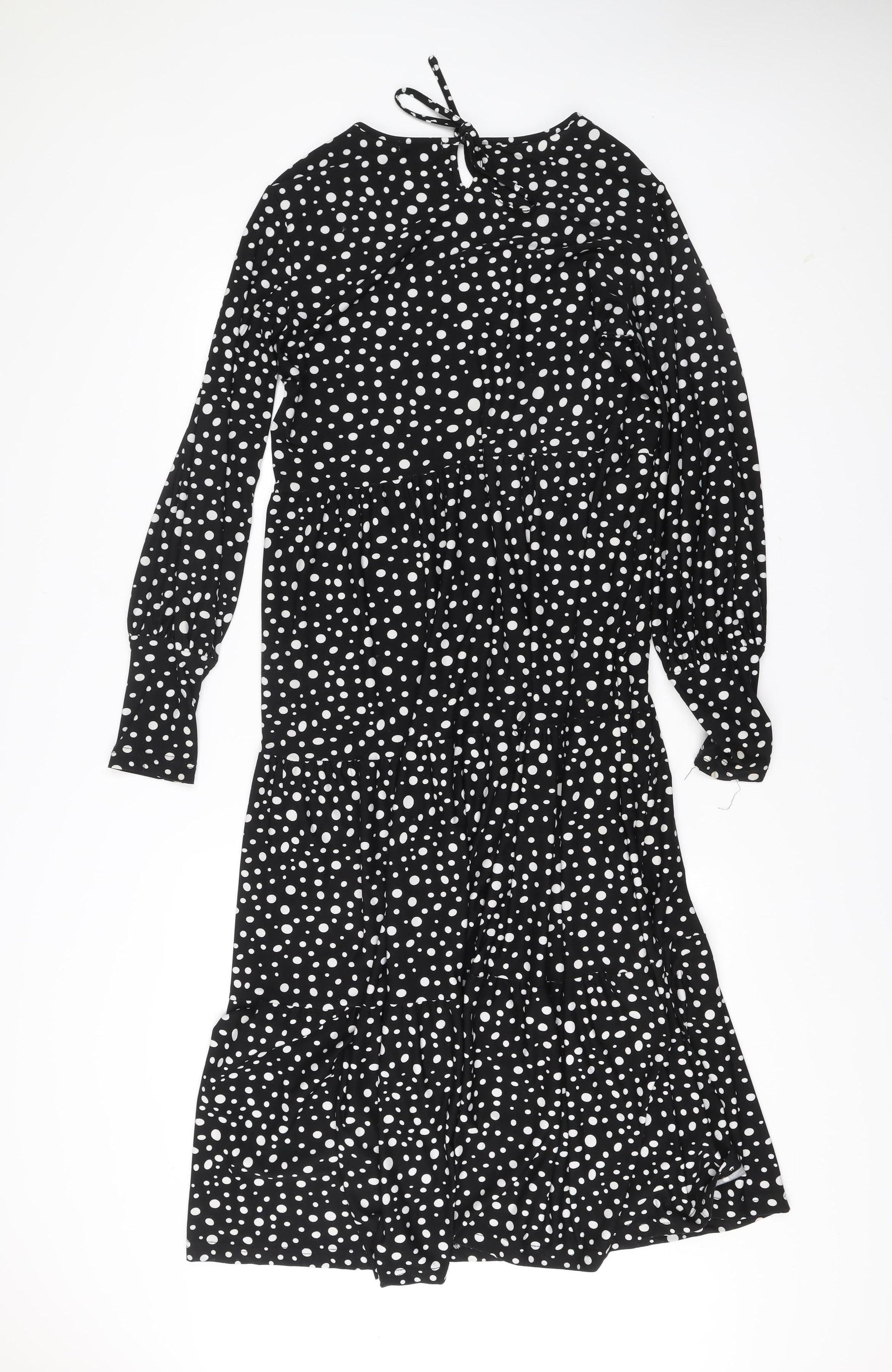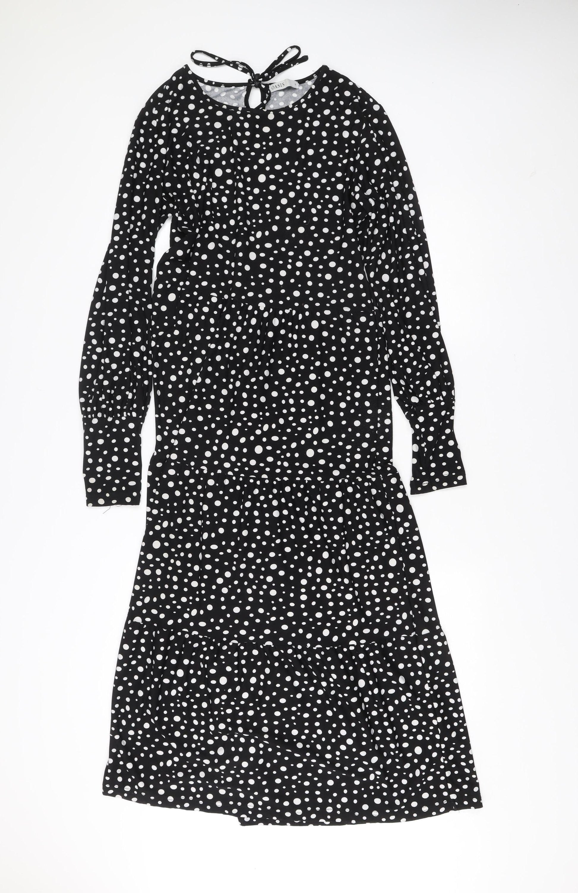 Oasis Womens Black Polka Dot A-Line Knee Length Dress Size 12