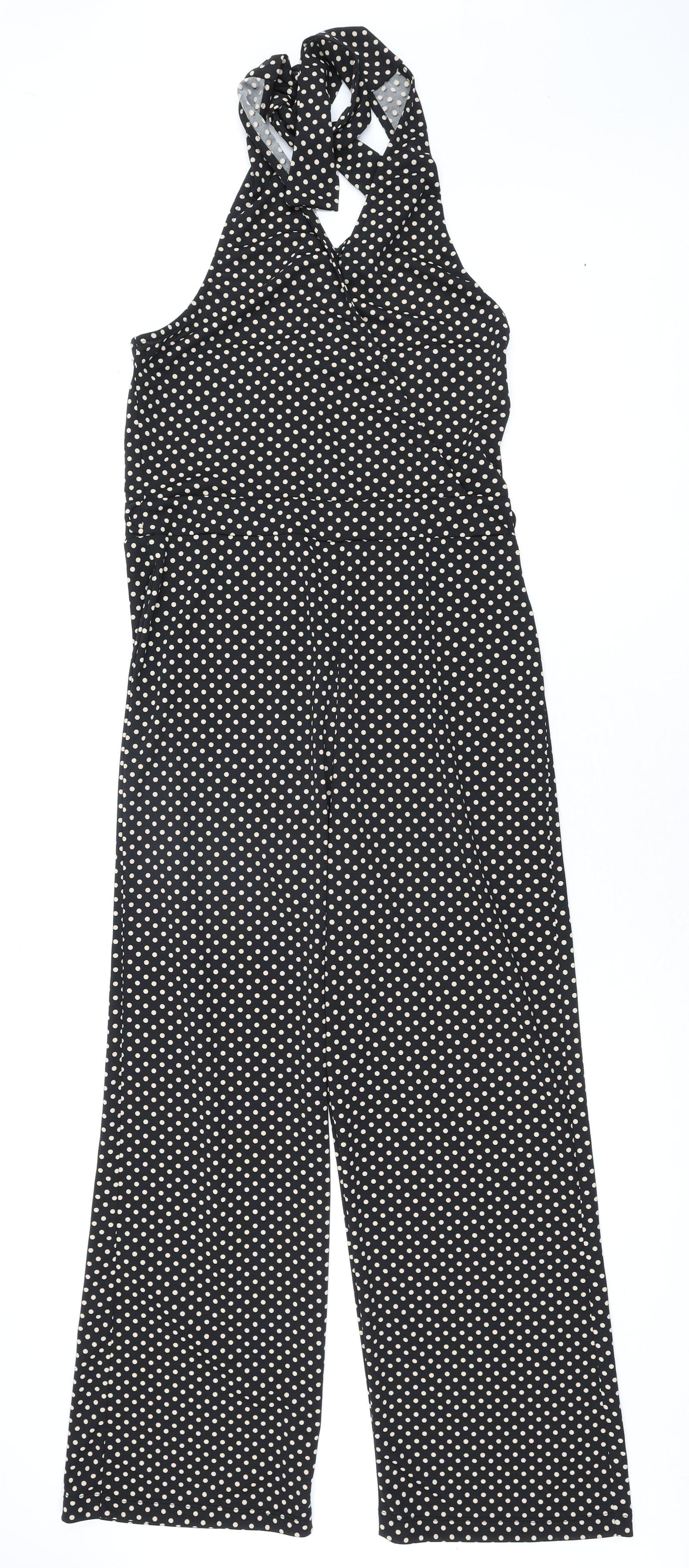 Oasis Womens Black Polka Dot Polyester Jumpsuit One-Piece Size M L28 in Tie