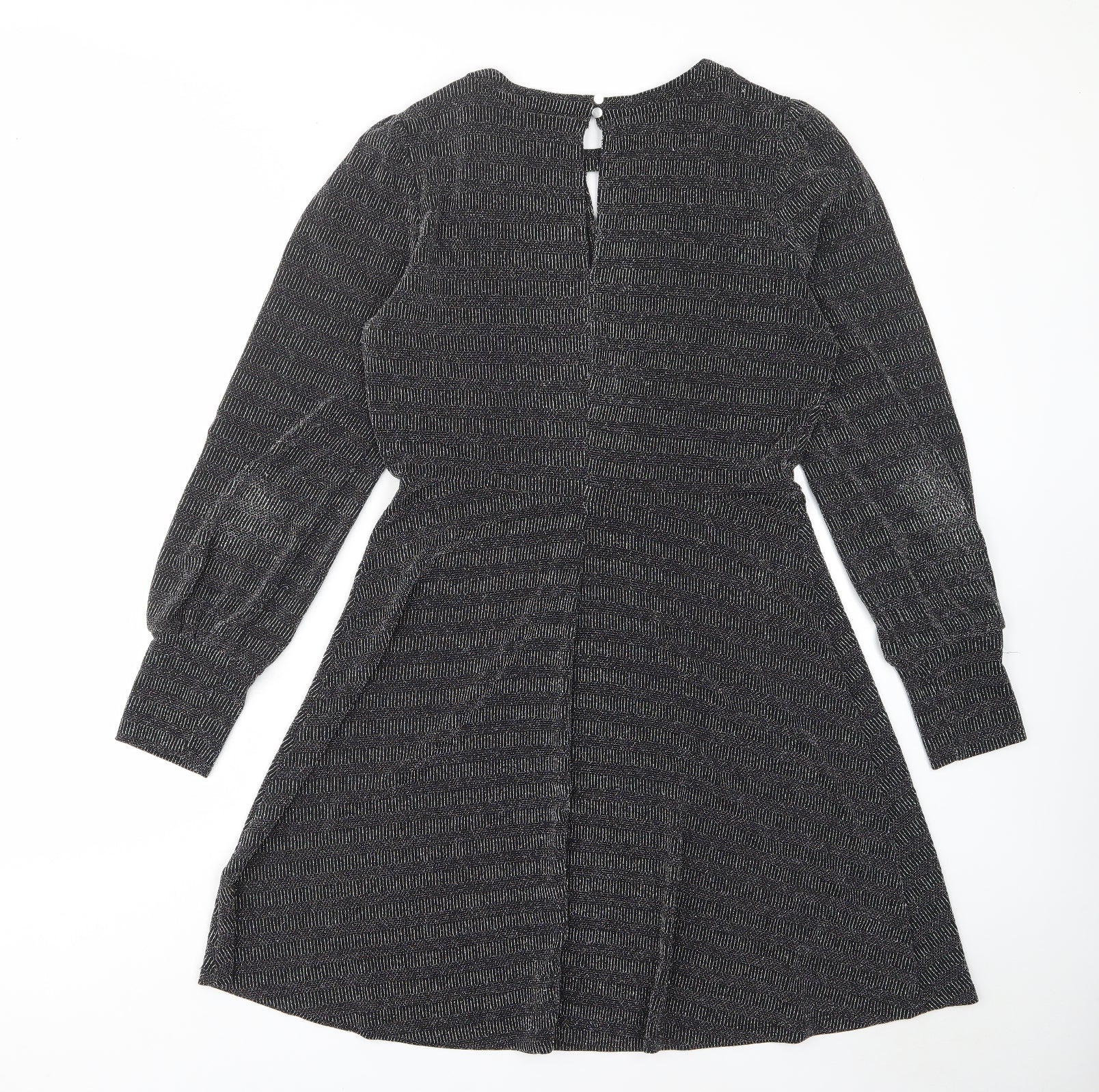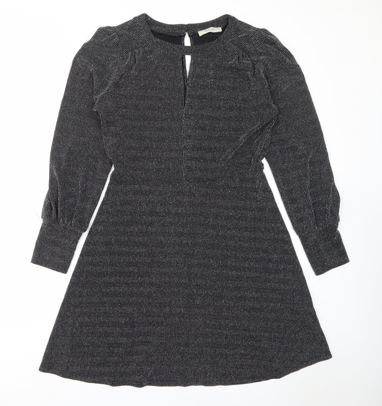 Oasis Womens Black Polyamide A-Line Size M Crew Neck Button - Keyhole neck