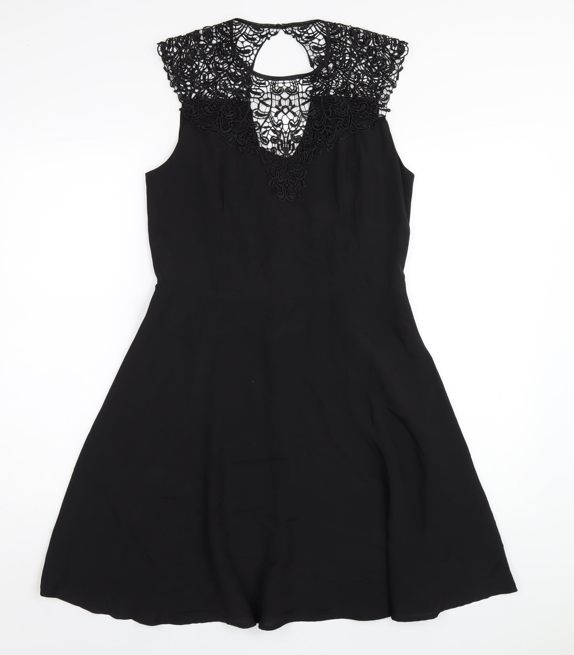 Oasis Womens Black Polyester A-Line Size 12 Round Neck Zip