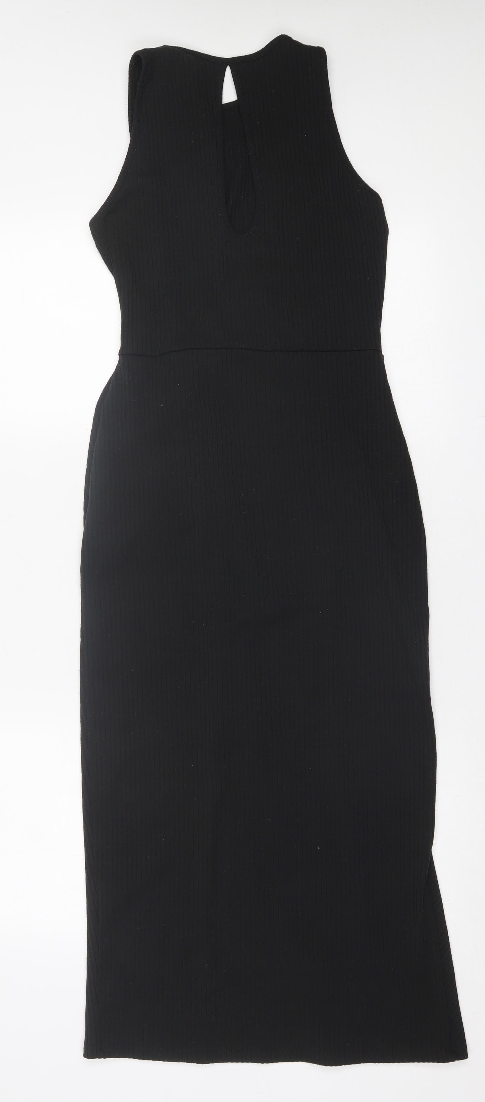 Oasis Womens Black Polyester Bodycon Size S Crew Neck Button