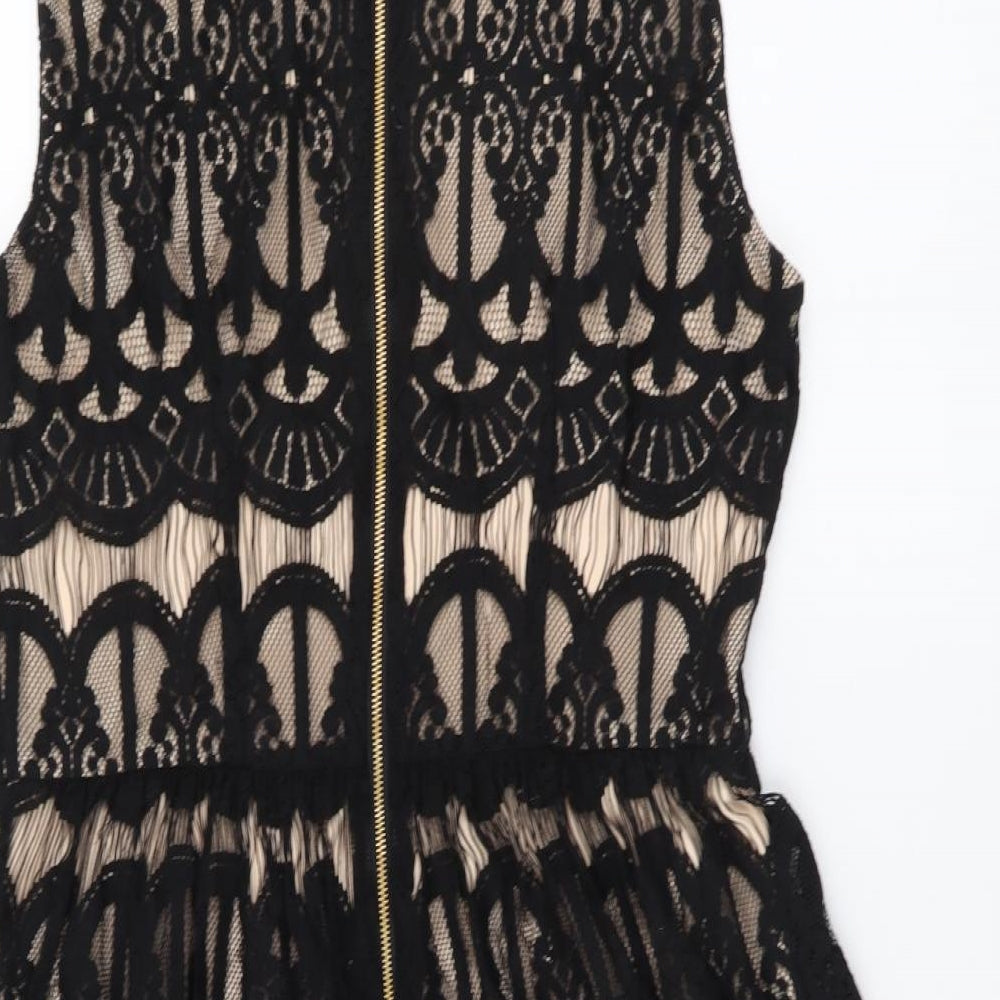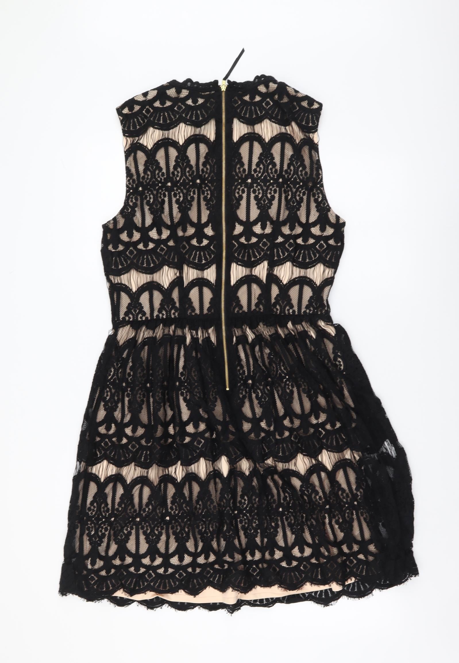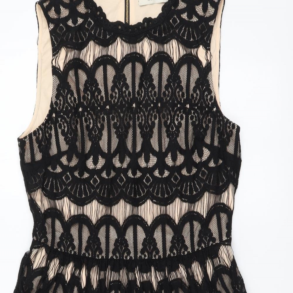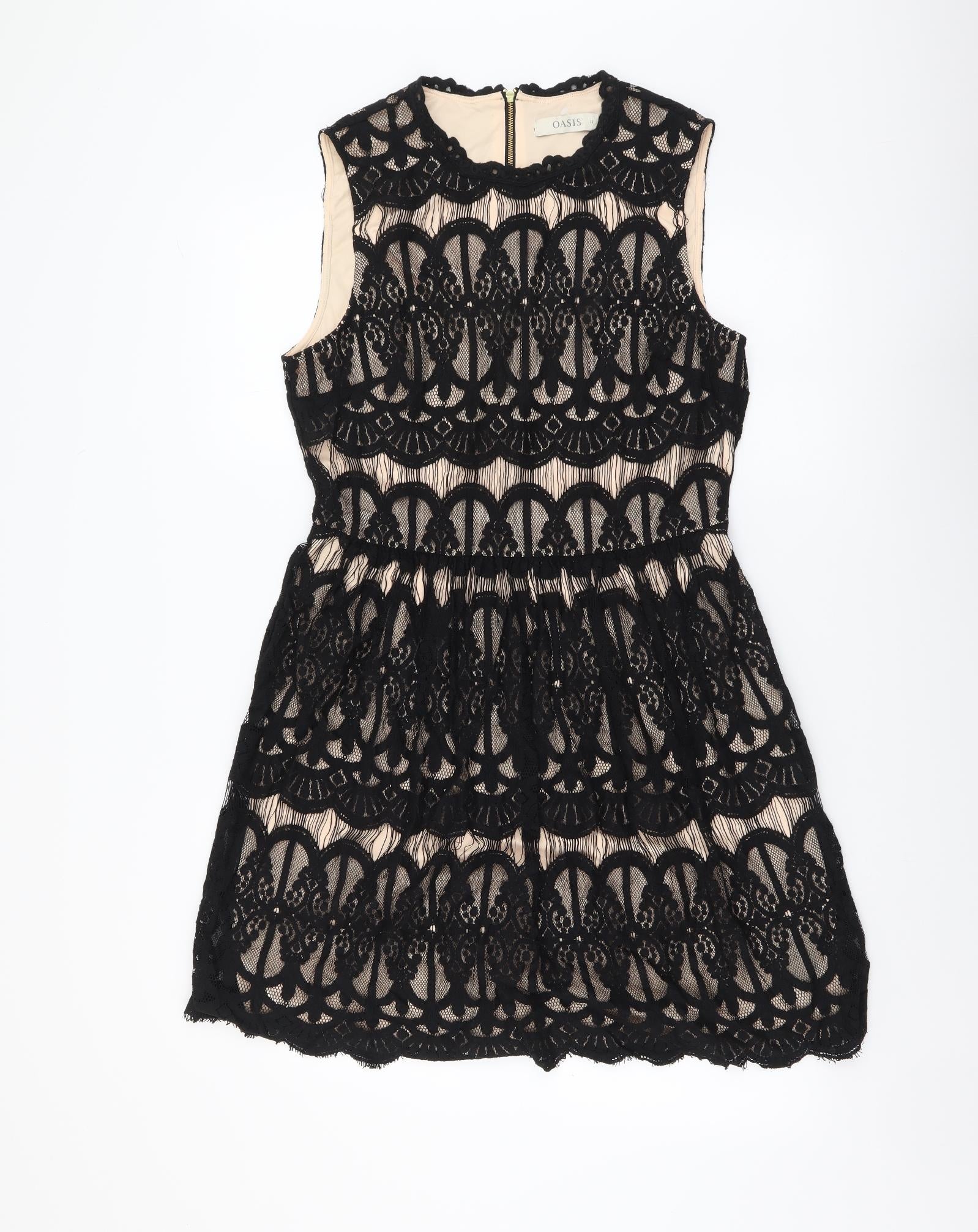 Oasis Womens Black Polyester Fit & Flare Size 12 Round Neck Zip