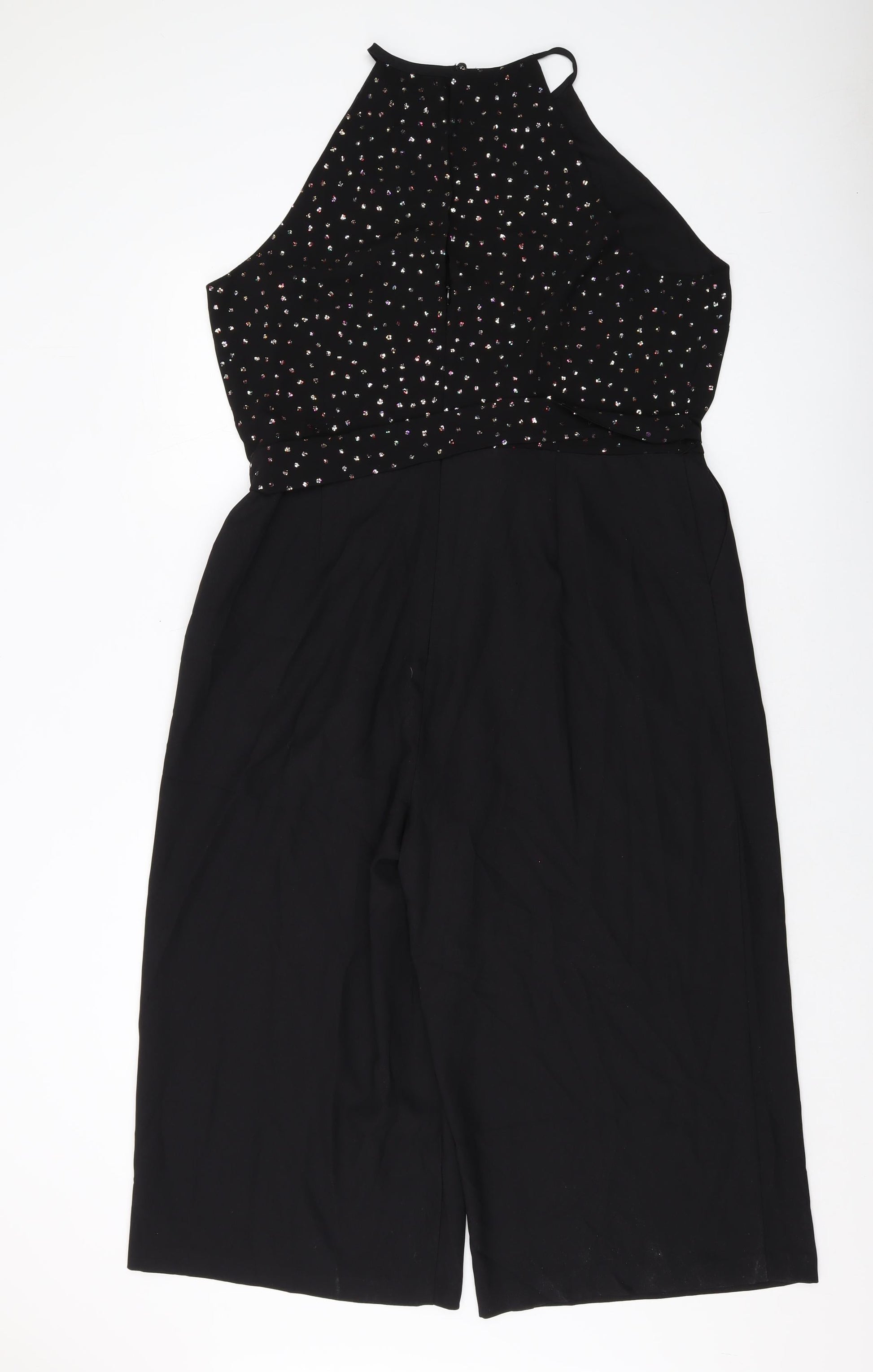Oasis Womens Black Polyester Jumpsuit One-Piece Size 10 Button