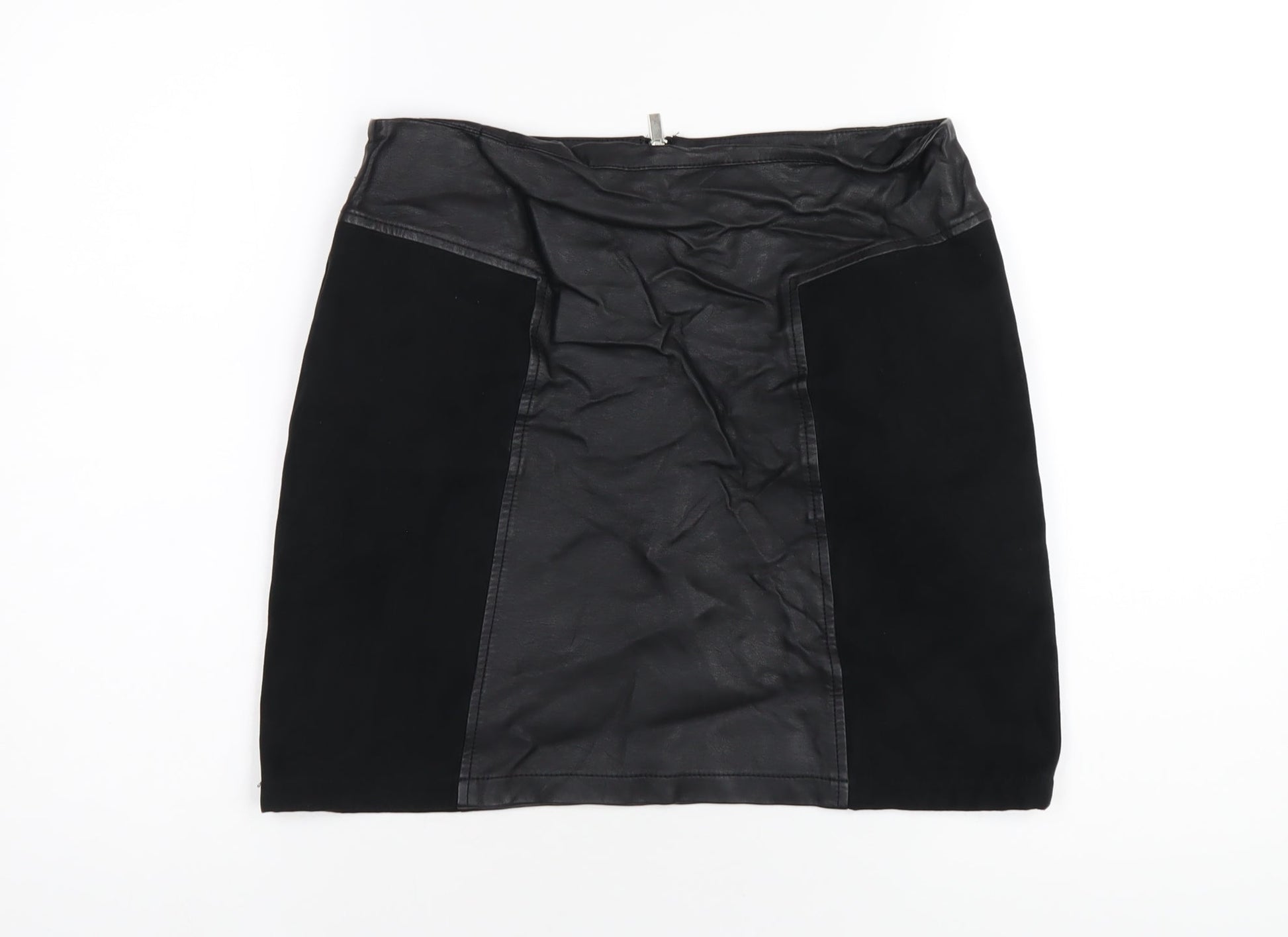 Oasis Womens Black Polyurethane A-Line Skirt Size 10 Zip