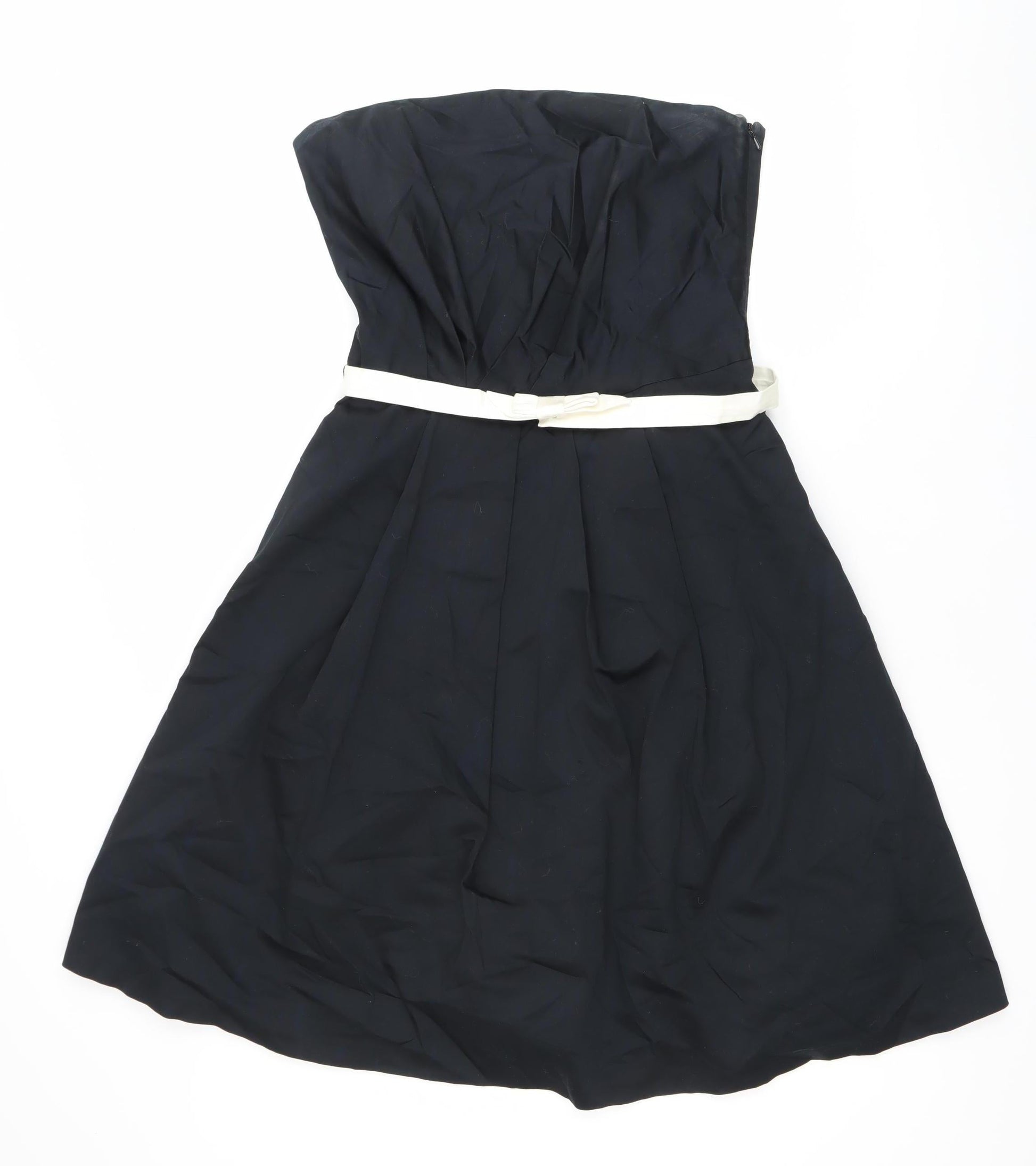 Oasis Womens Black Strapless A-Line Dress Size 12 Belted Cocktail