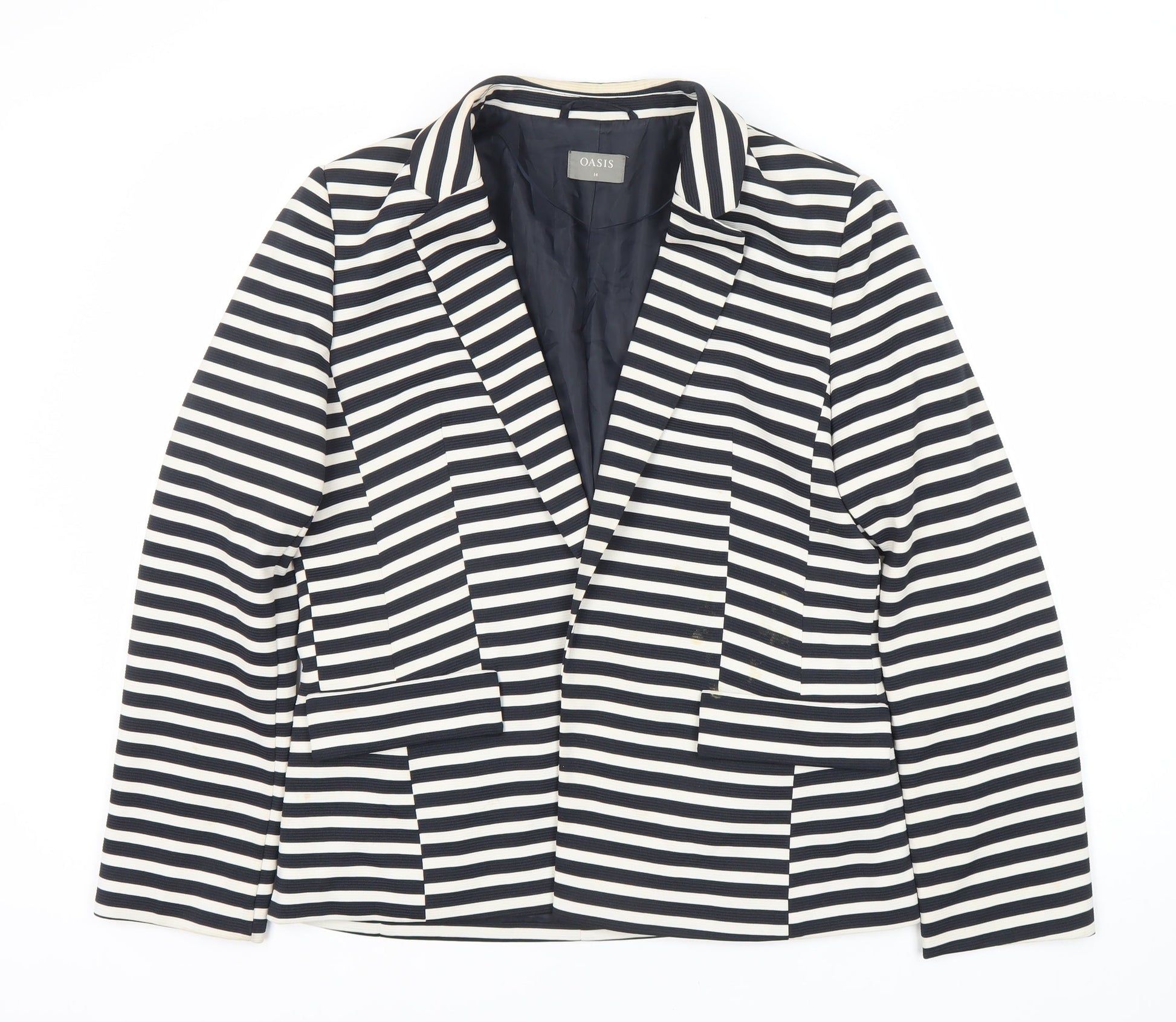 Oasis Women's Black Striped Blazer, UK 14, Excellent