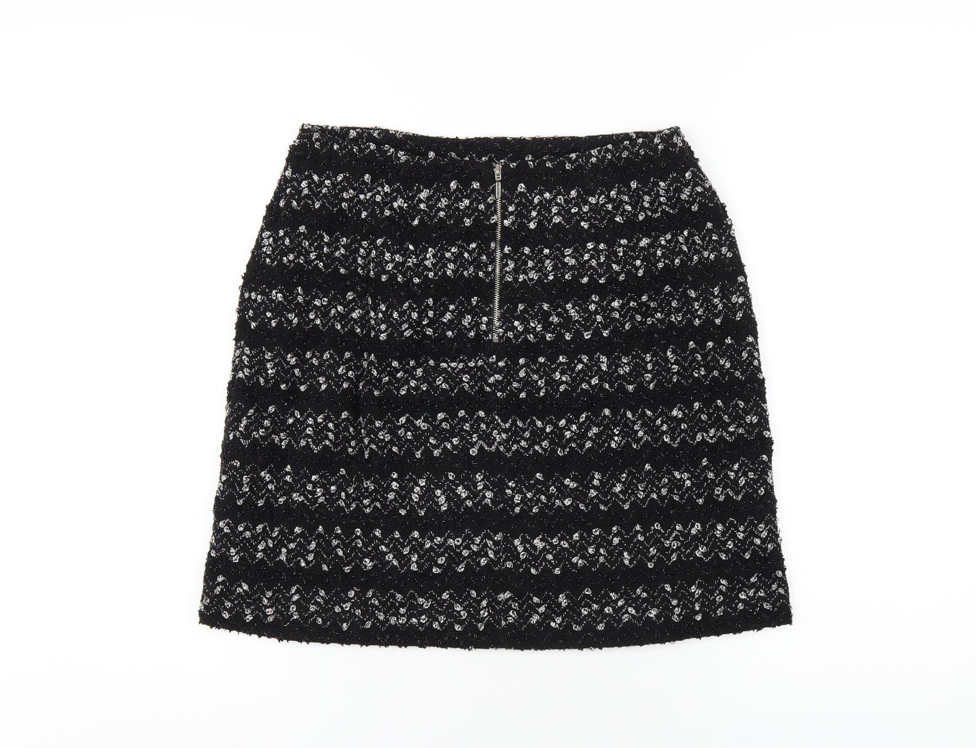 Oasis Womens Black Striped Polyester A-Line Skirt Size S Zip