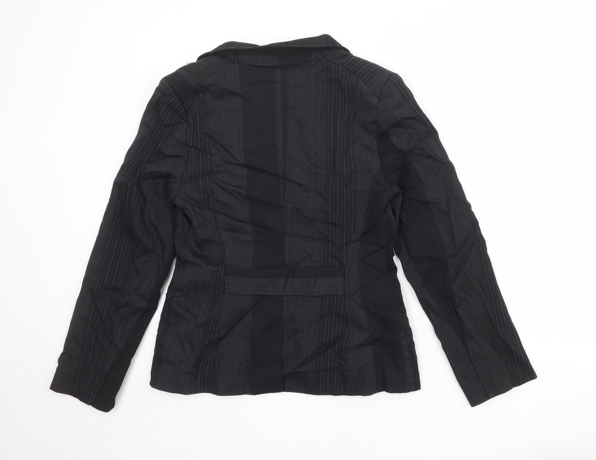Oasis Womens Black Striped Polyester Jacket Blazer Size 12