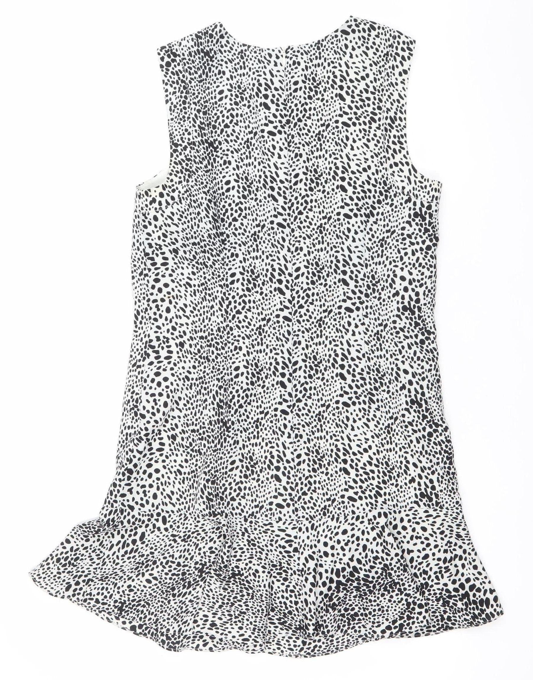Oasis Womens Black White Animal Print Shift Dress Size 8 Sleeveless