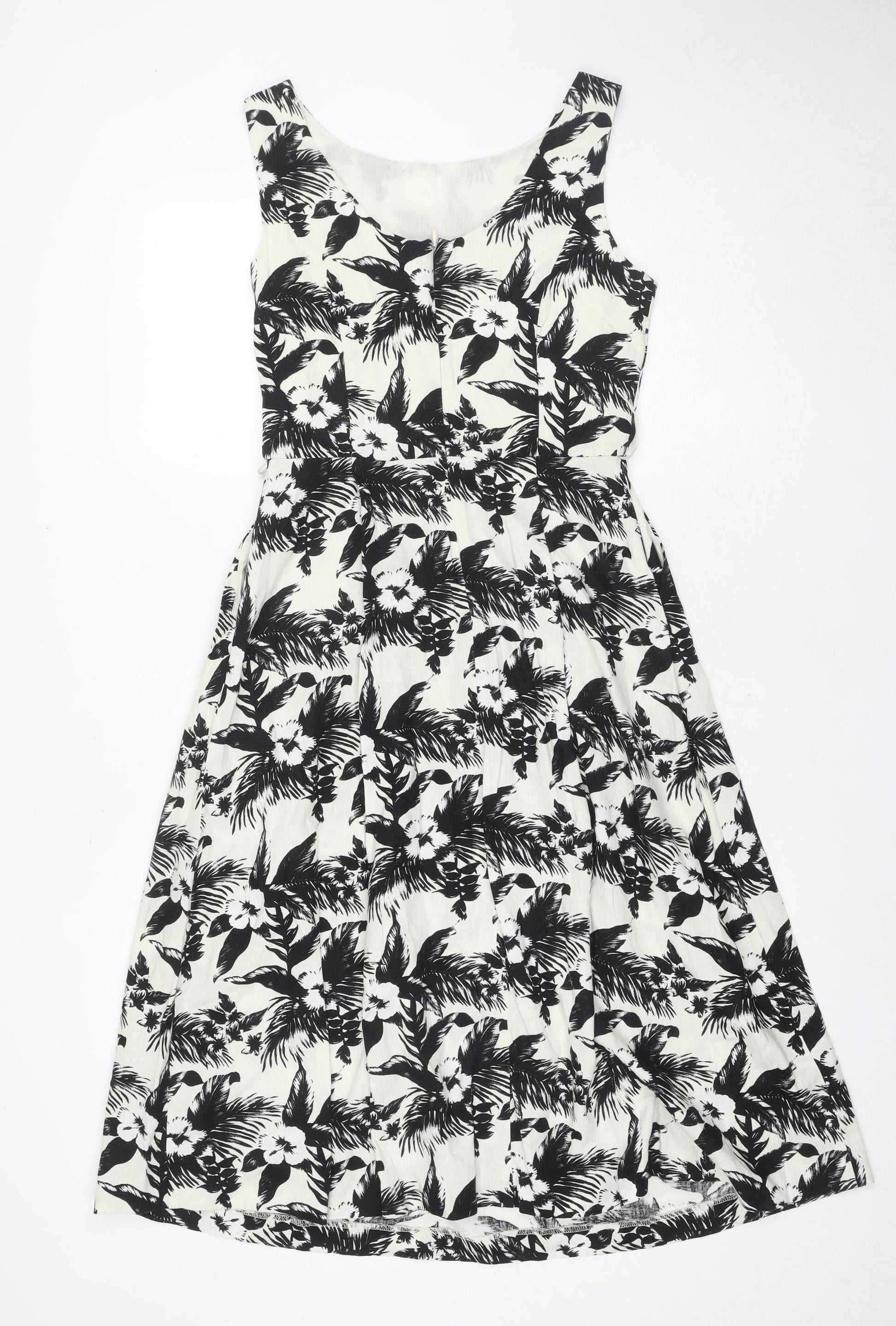 Oasis Women's Black & White Floral A-Line Dress Size 10