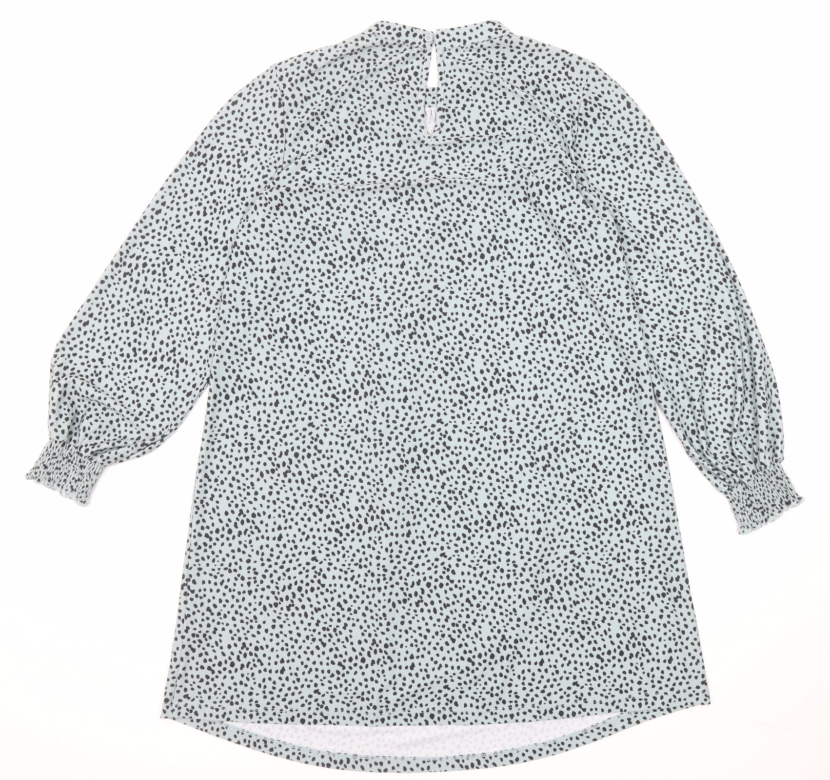 Oasis Womens Blue Animal Print Polyester A-Line Size M Round Neck Button - Cheetah pattern