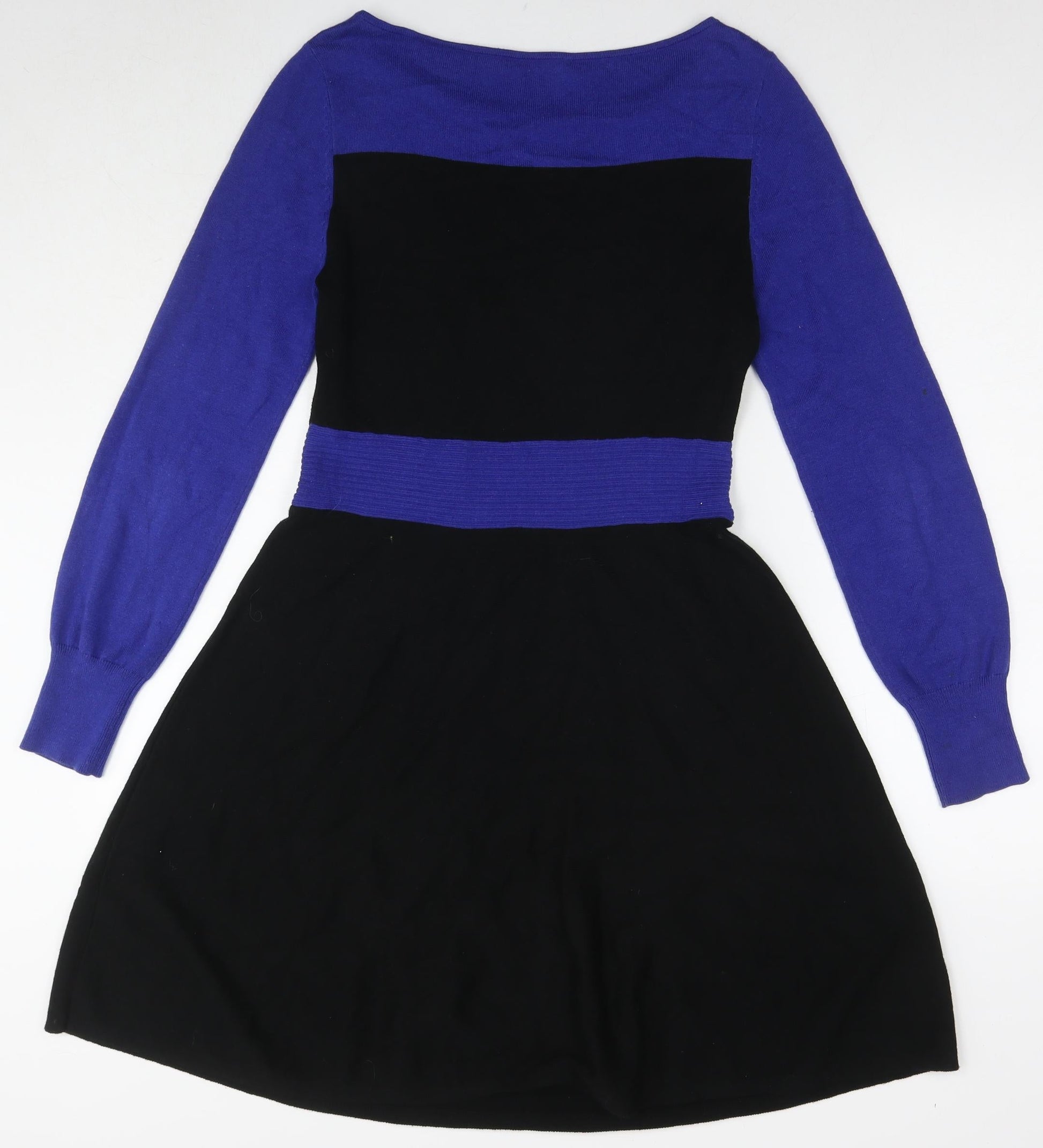 Oasis Womens Blue Colourblock Cotton Jumper Dress Size M Round Neck Pullover