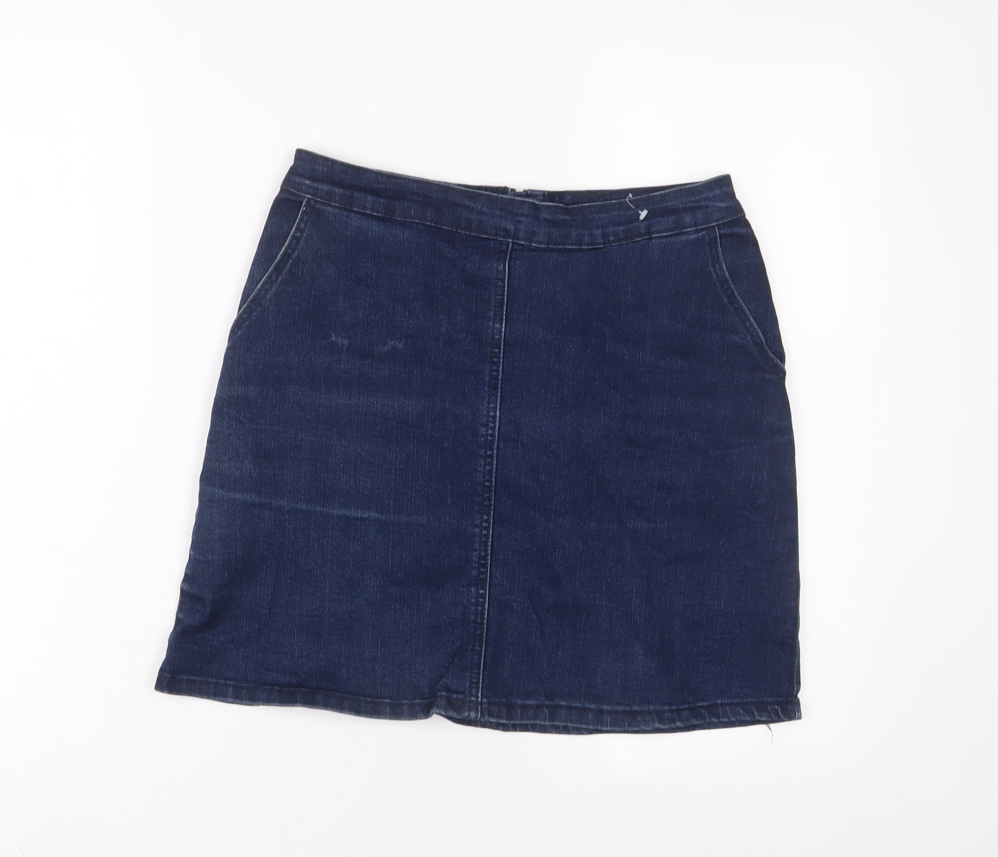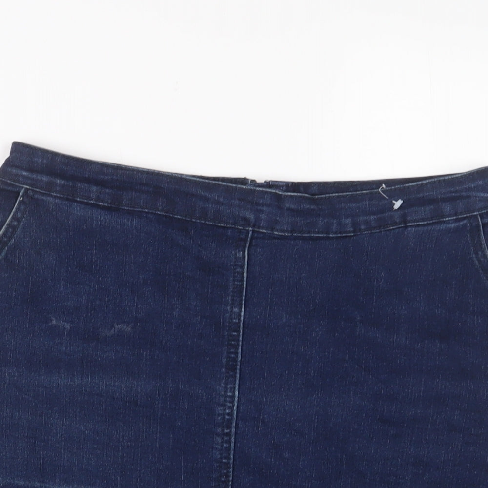 Oasis Womens Blue Cotton A-Line Skirt Size 6 Zip