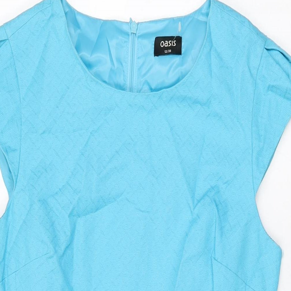 Oasis Womens Blue Cotton Bodycon Size 12 Round Neck Zip