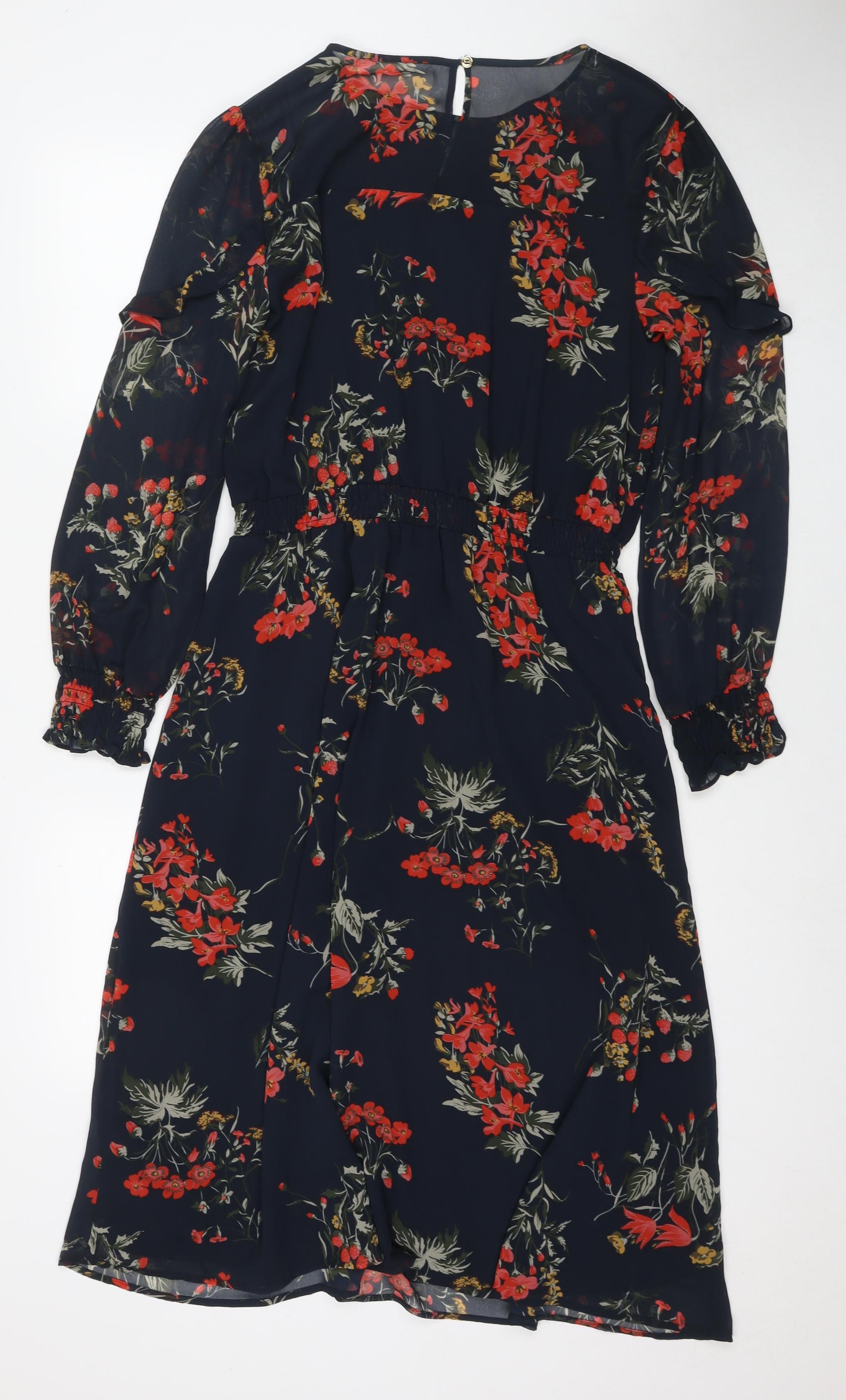 Oasis Womens Blue Floral Polyester Maxi Size 14 Round Neck Button