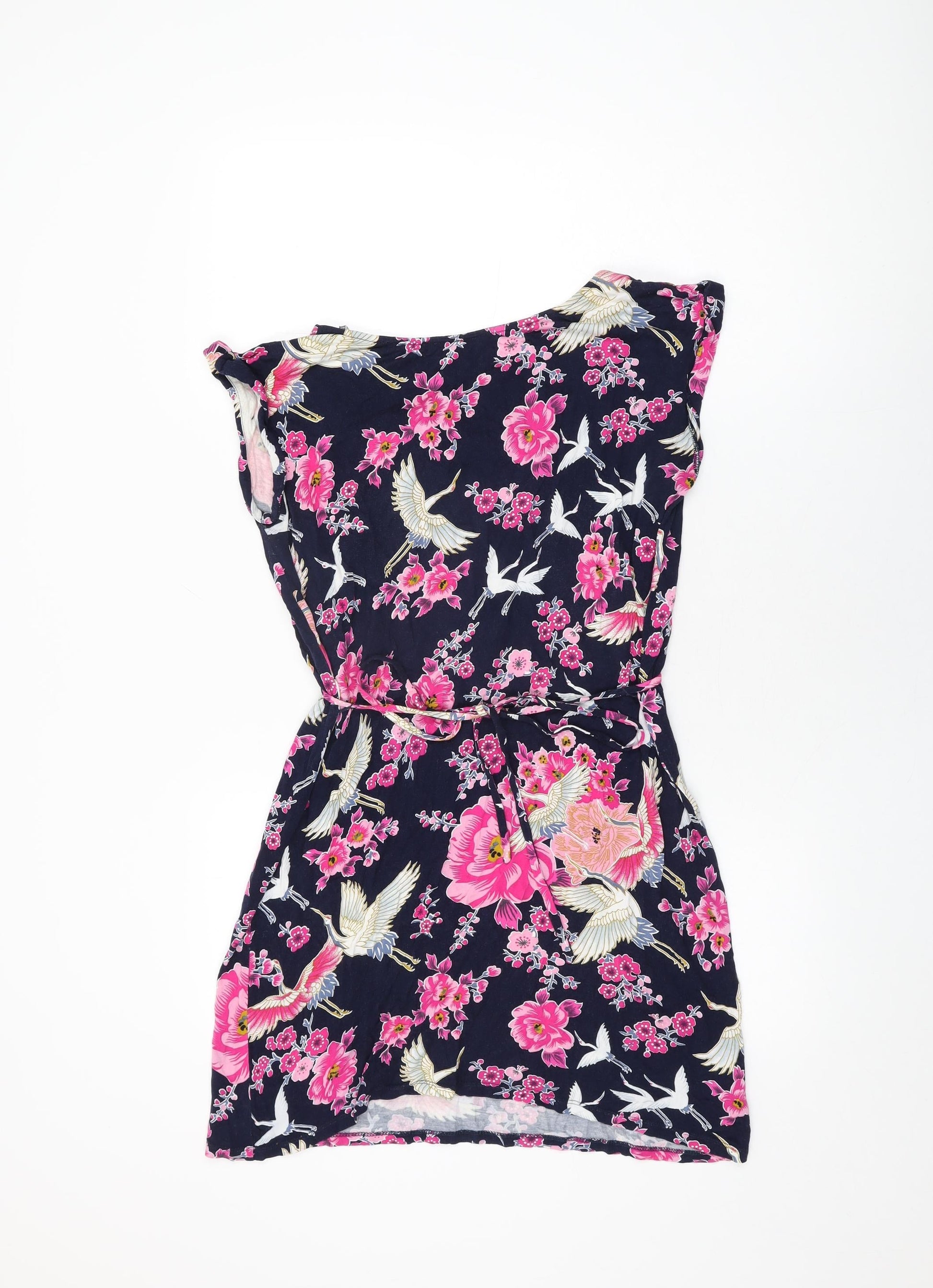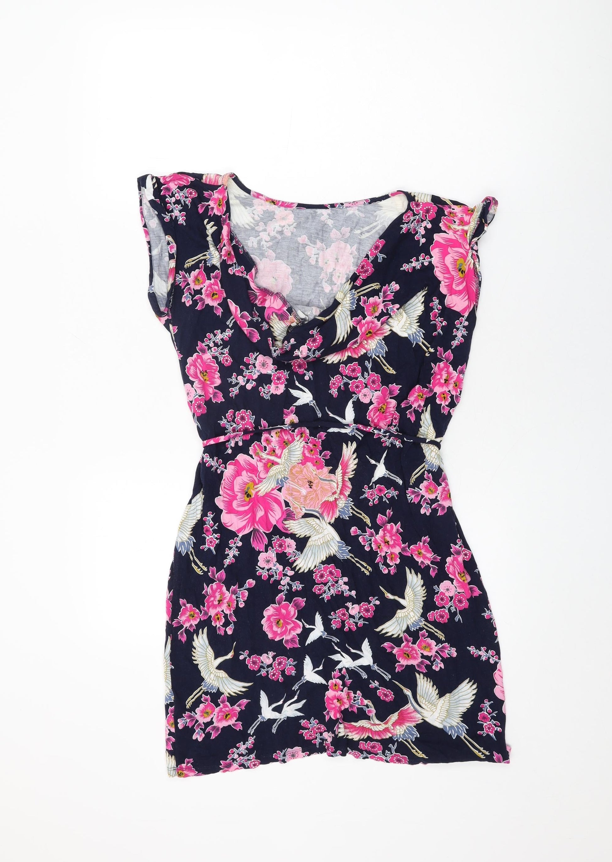 Oasis Womens Blue Floral Viscose Shift Size M Round Neck Pullover - Bird Print
