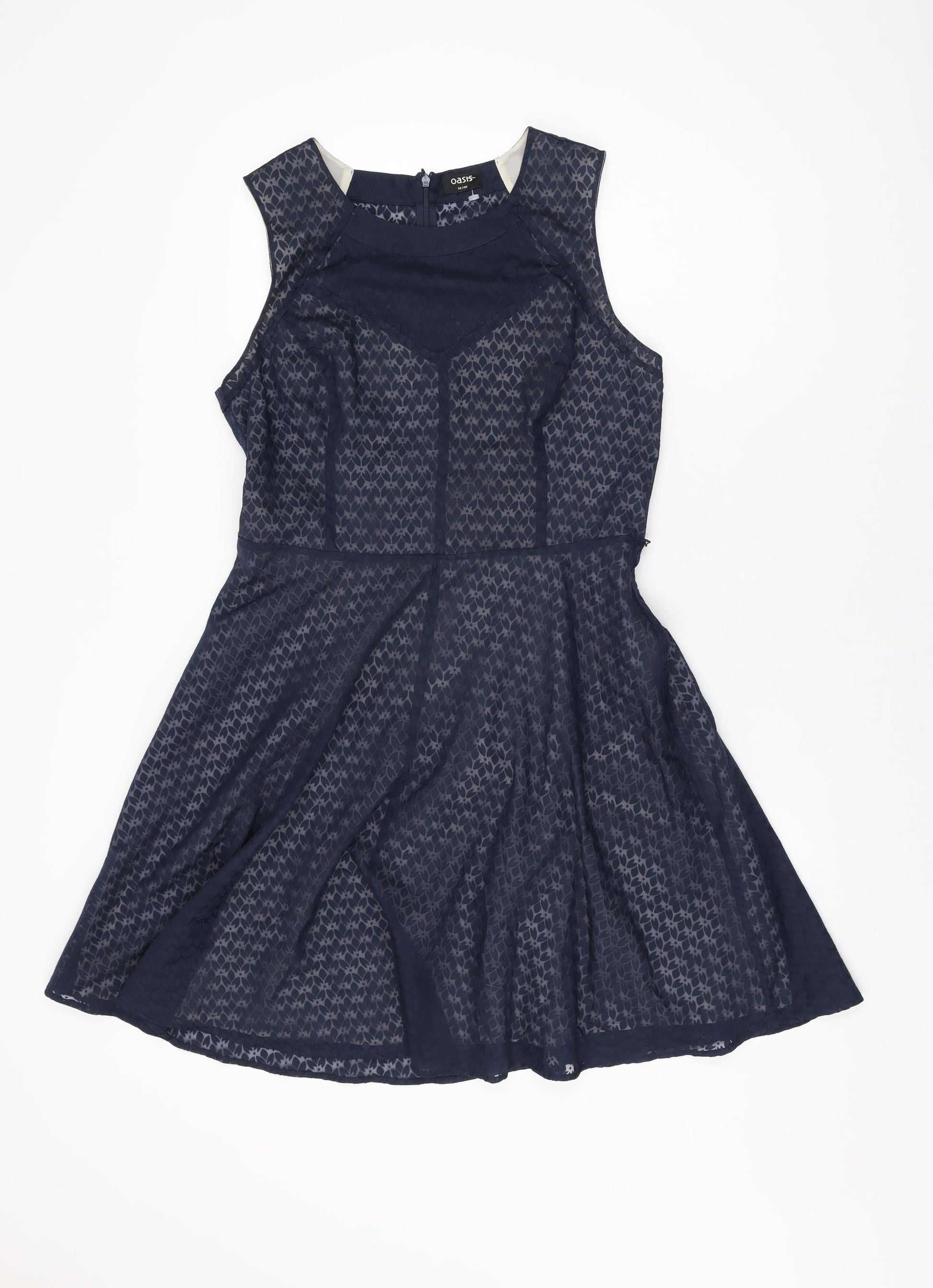 Oasis Womens Blue Geometric Polyester A-Line Size 14 Round Neck Zip