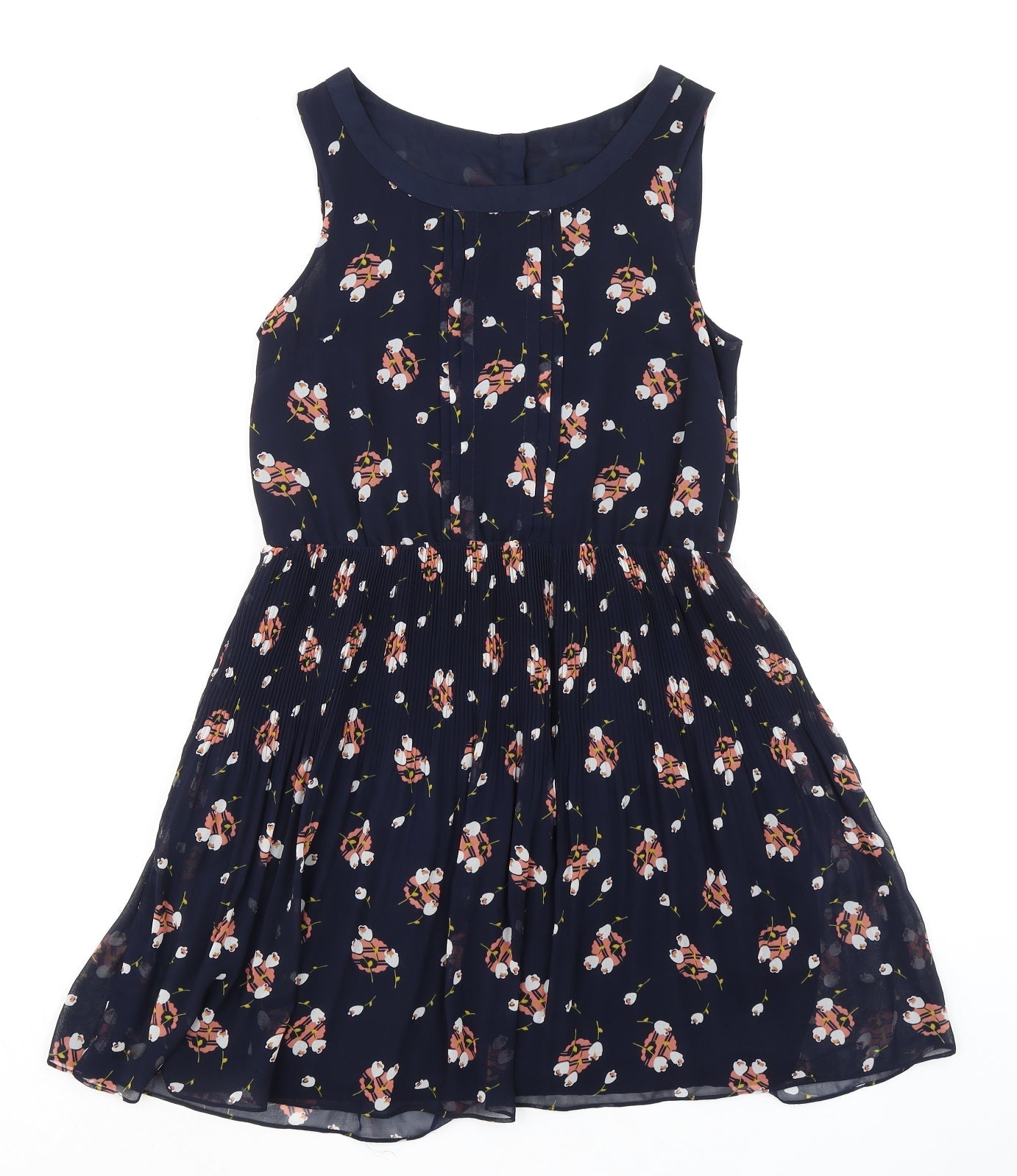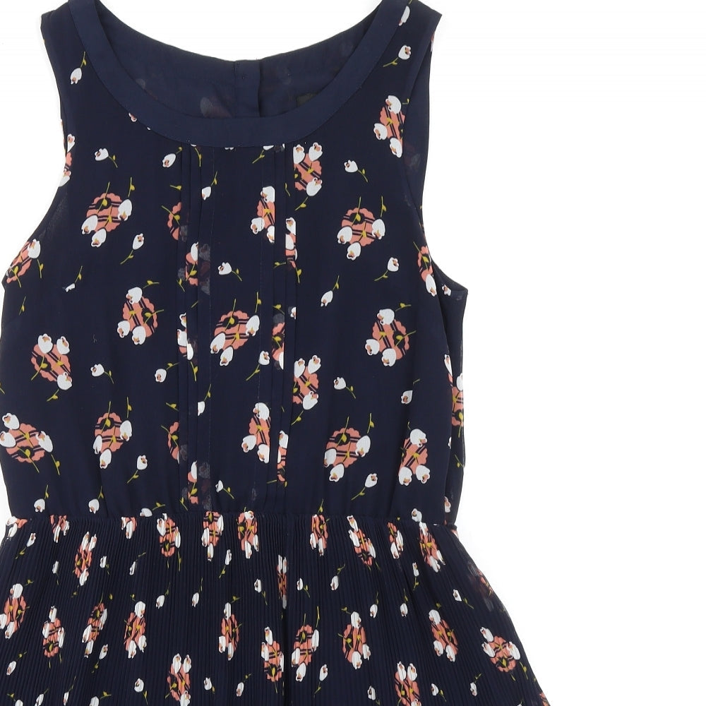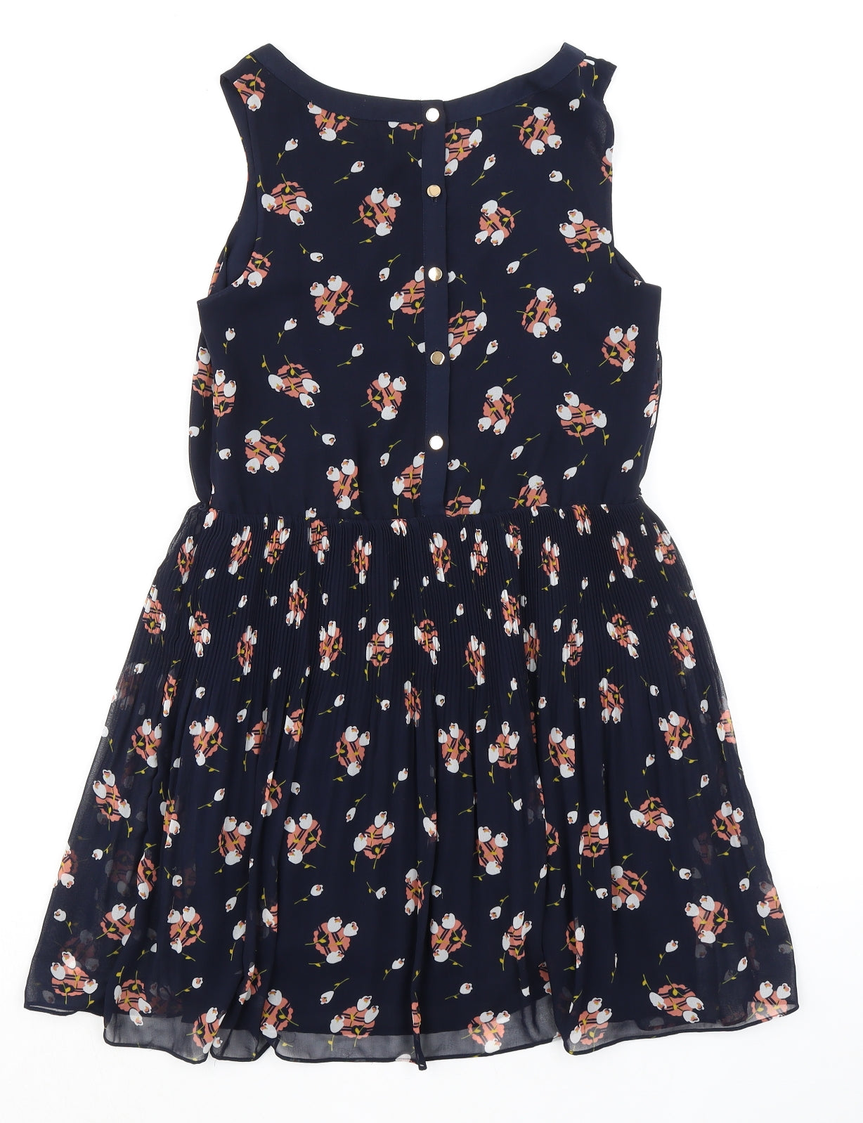 Oasis Womens Blue Geometric Polyester A-Line Size 8 Round Neck Button