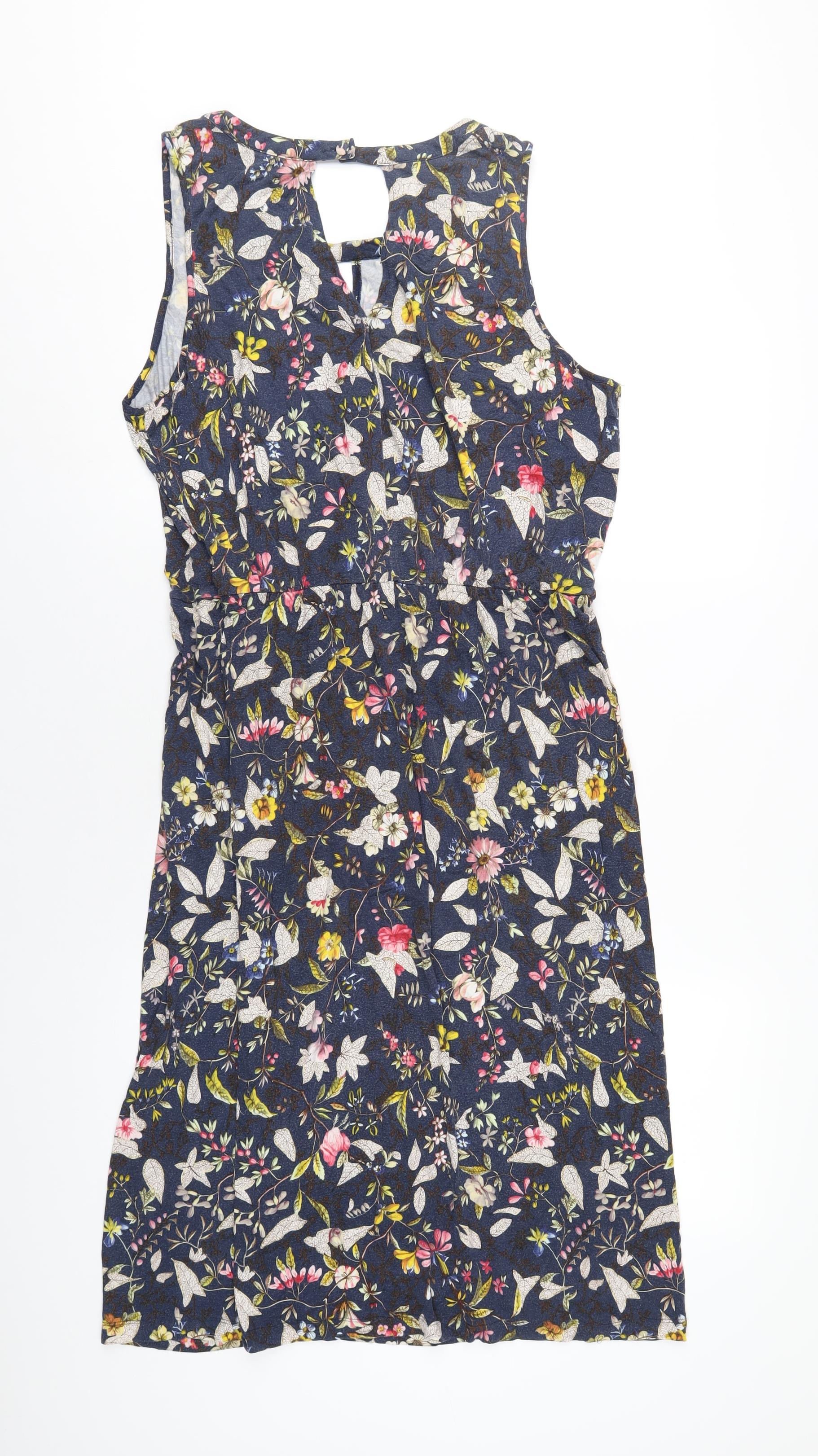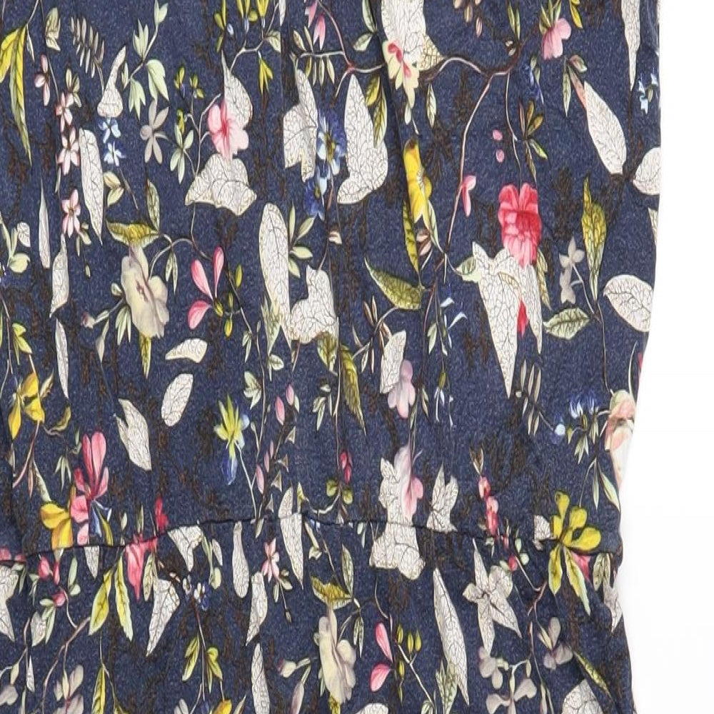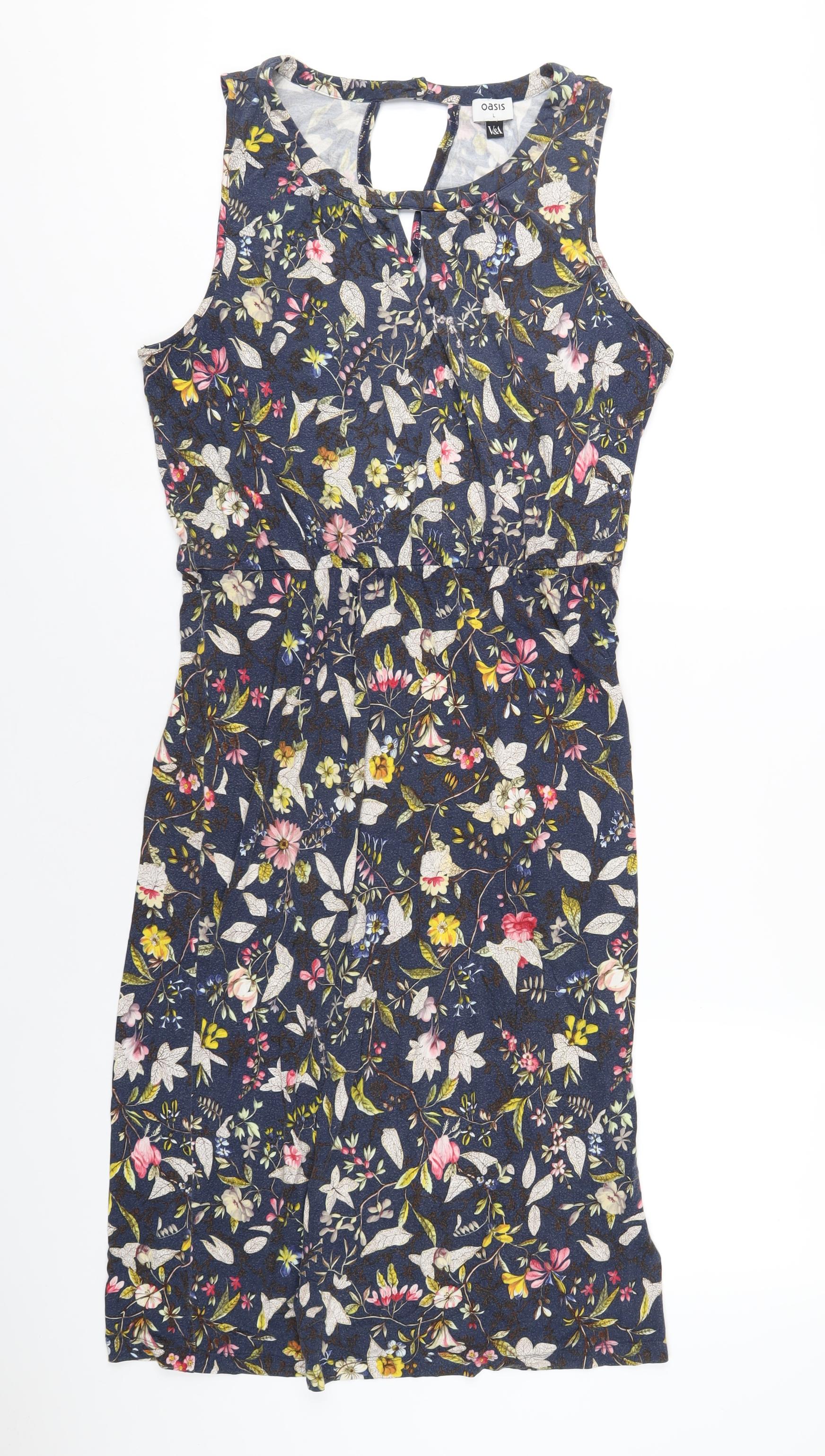 Oasis Womens Blue Geometric Viscose A-Line Size L Round Neck Pullover
