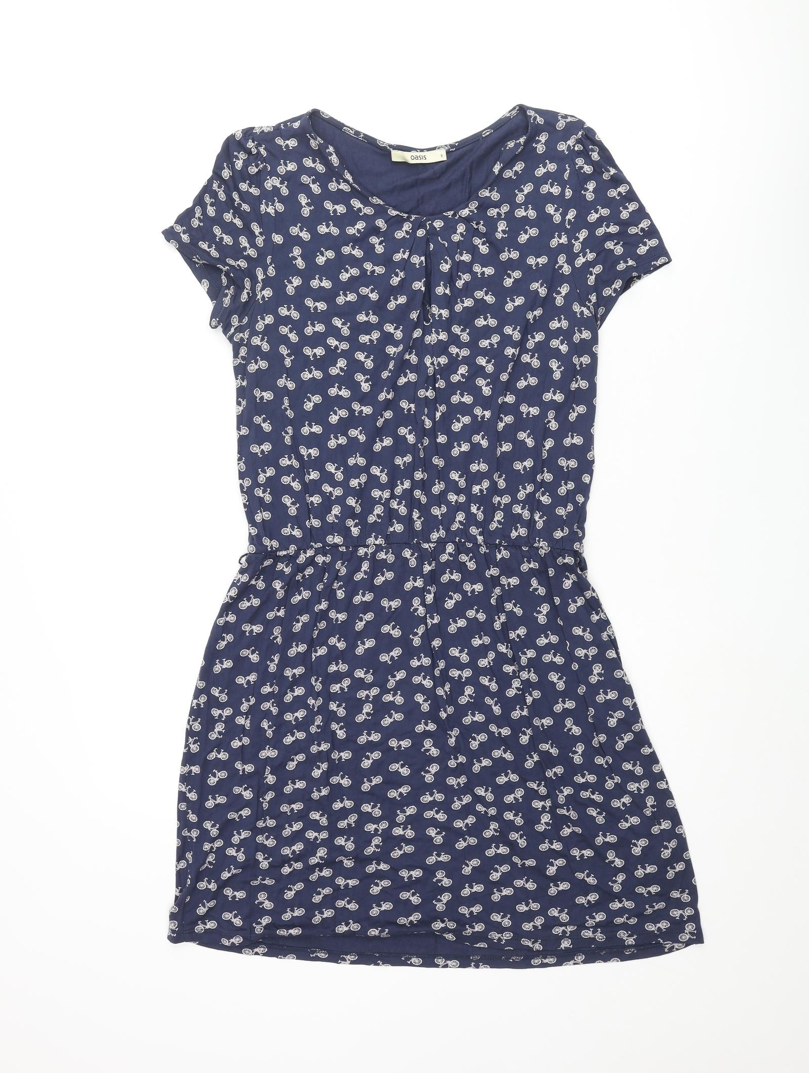 Oasis Womens Blue Geometric Viscose A-Line Size S Round Neck Pullover - Bicycle Pattern