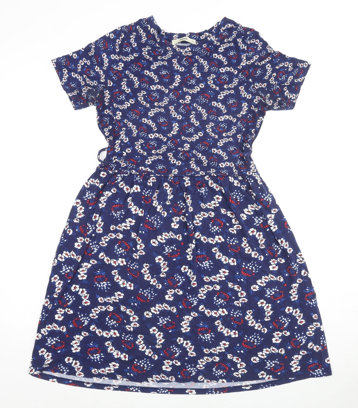 Oasis Womens Blue Geometric Viscose A-Line Size XS Round Neck Pullover