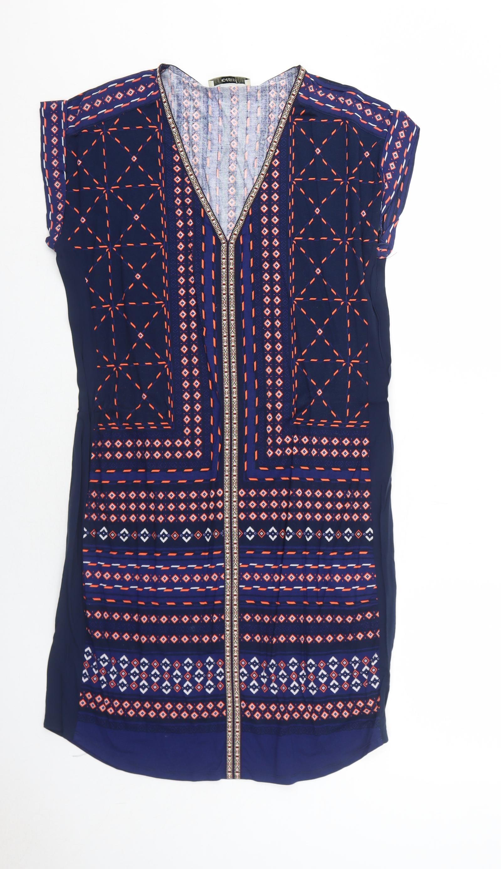 Oasis Womens Blue Geometric Viscose Shift Size M V-Neck Pullover