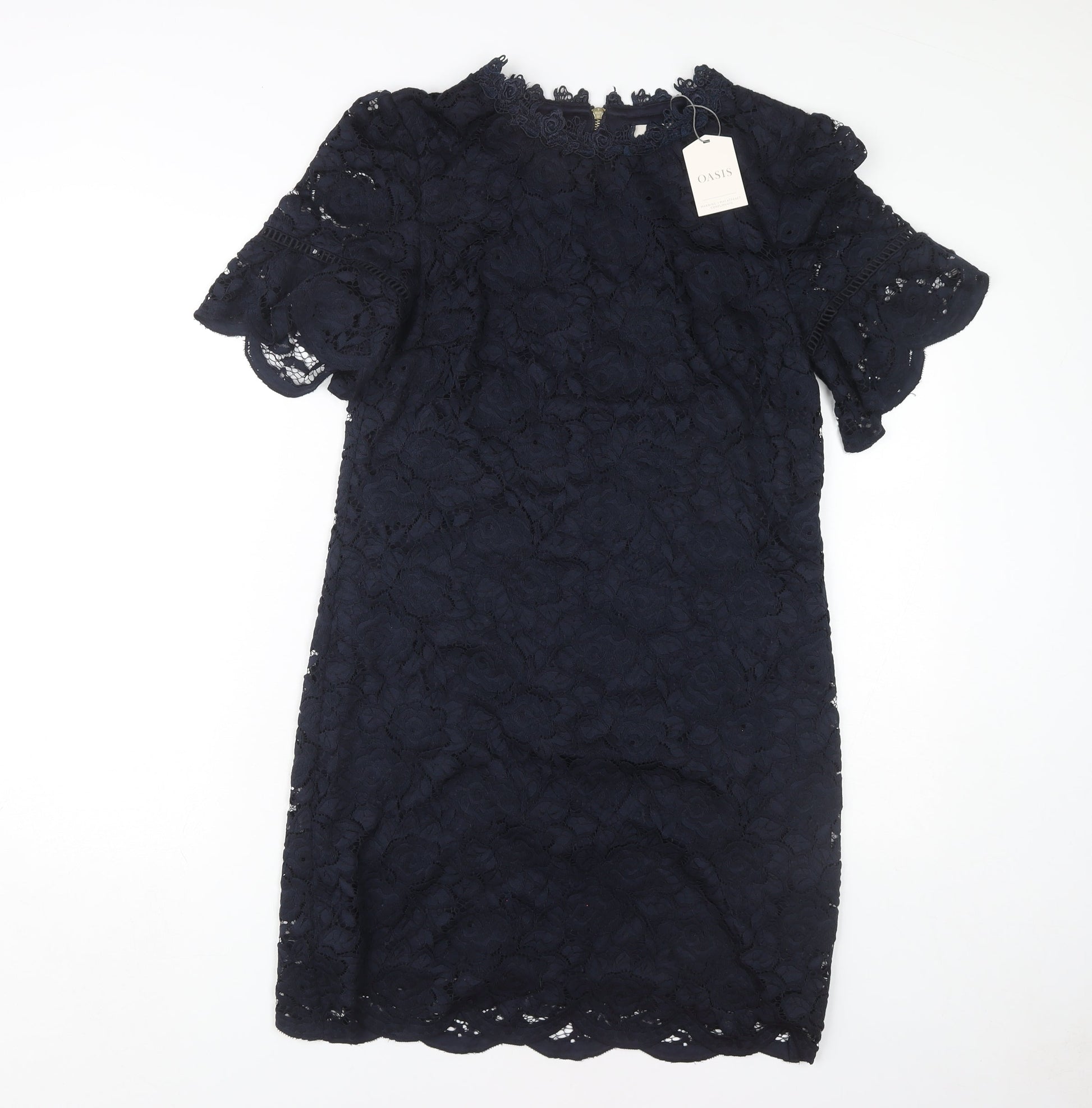 Oasis Women's Blue Lace Sheath Dress UK 10 Cocktail