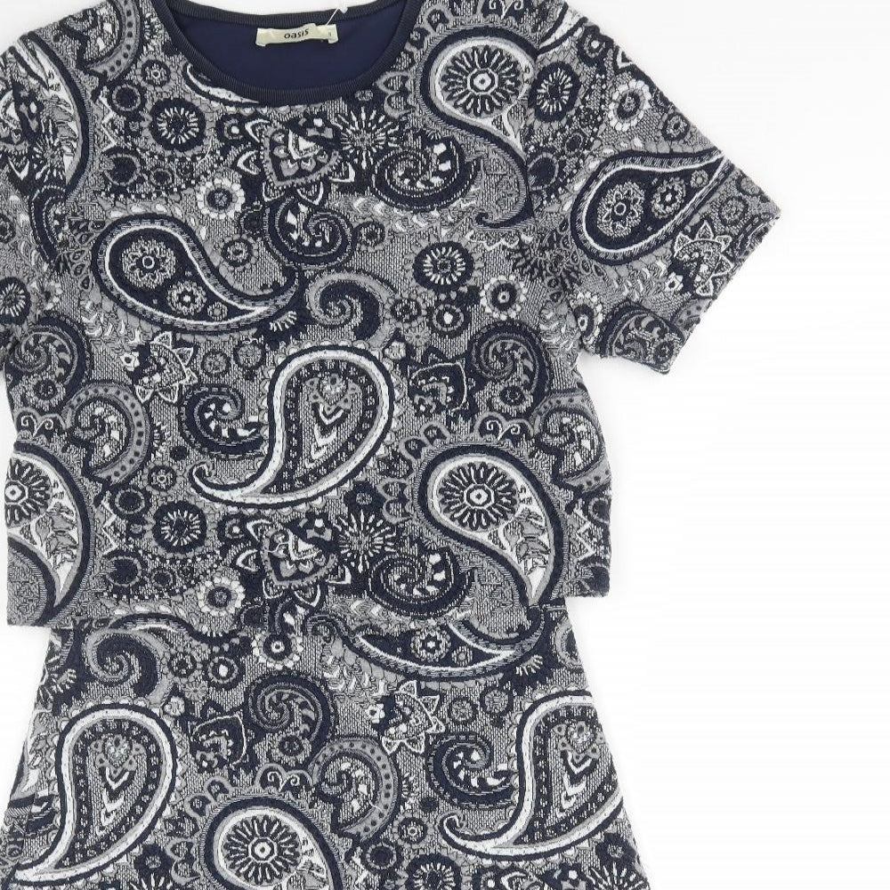 Oasis Womens Blue Paisley Polyester A-Line Size S Round Neck Pullover