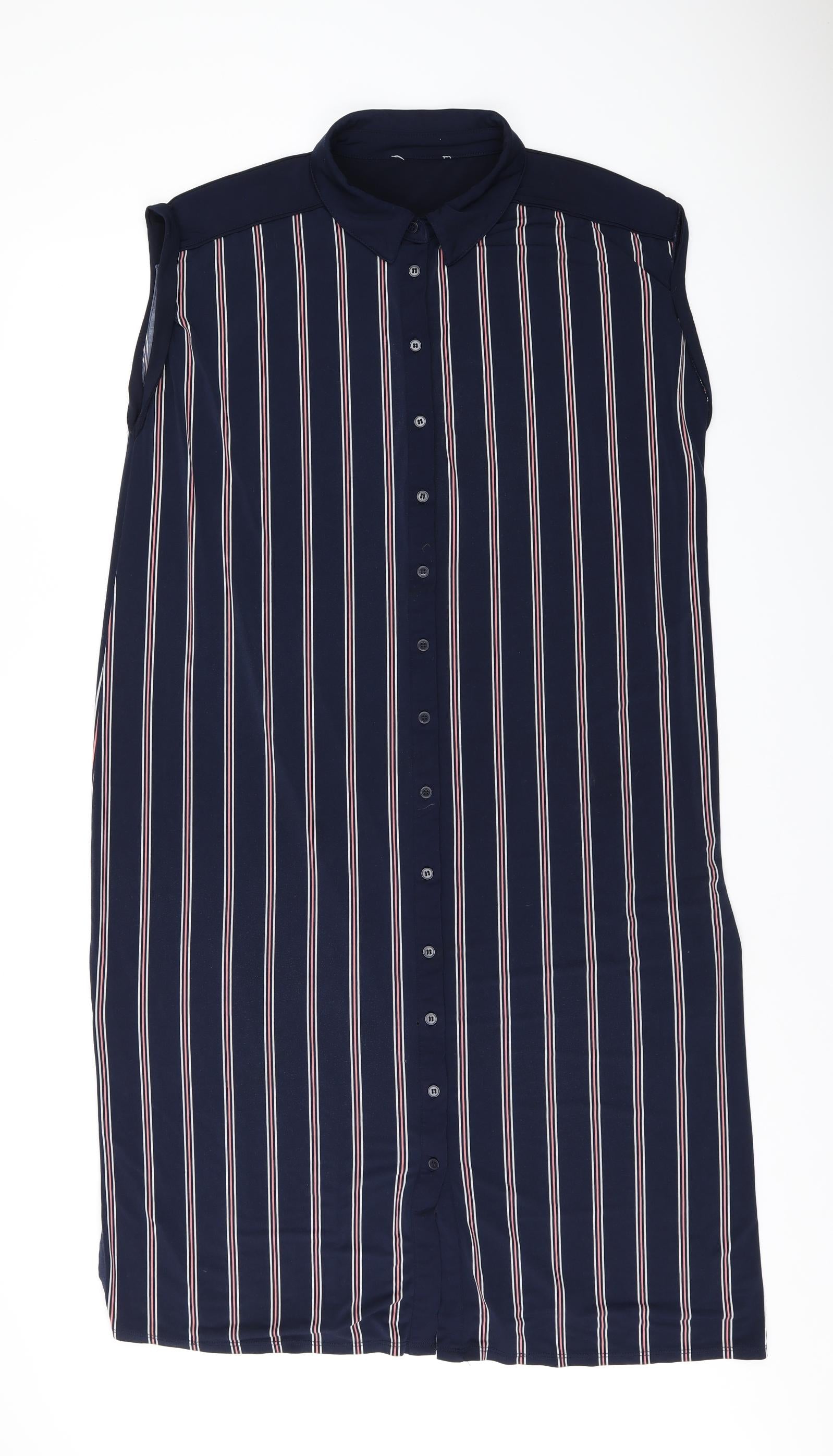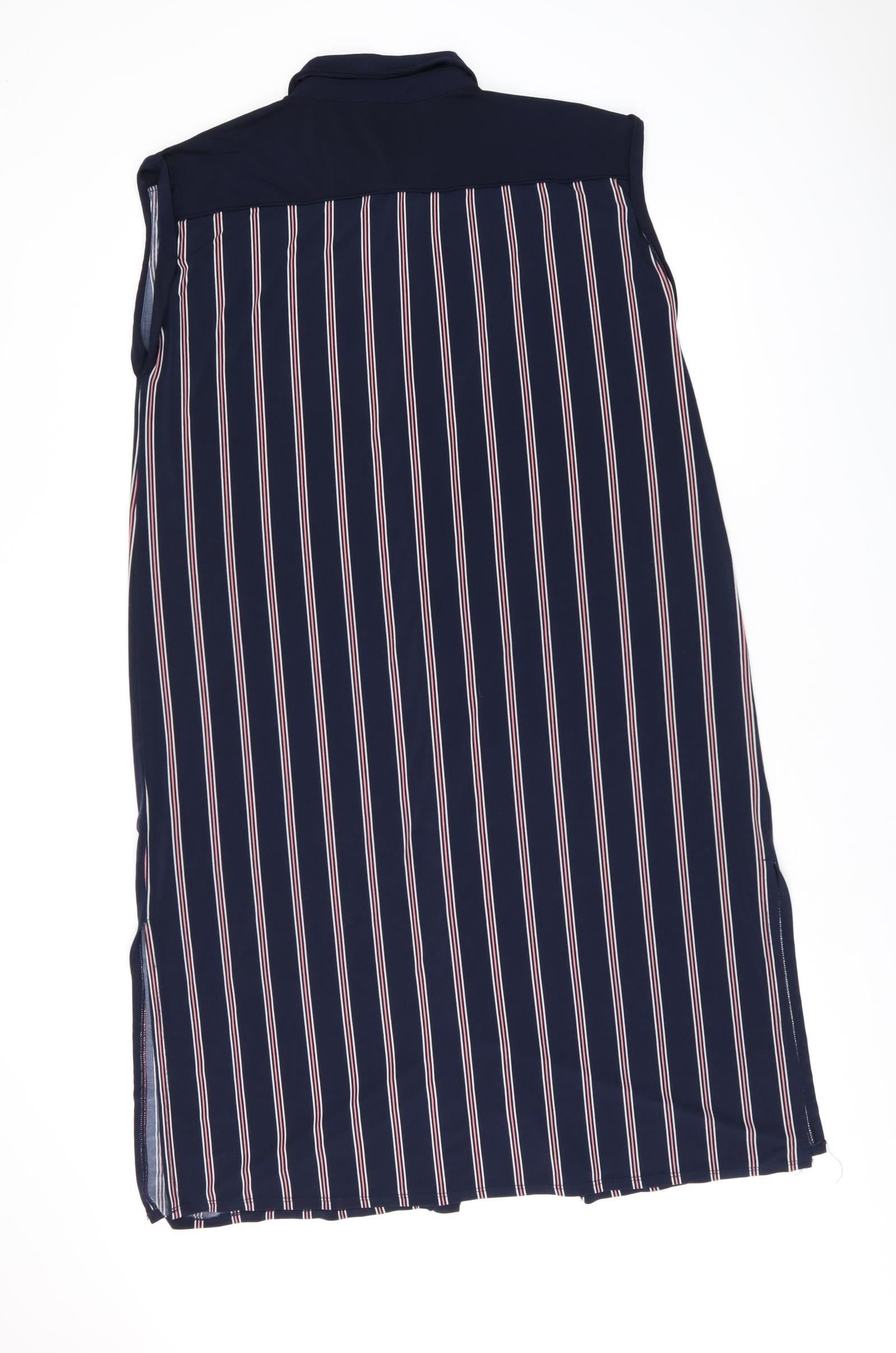 Oasis Womens Blue Striped Polyester Sheath Size L Collared Button