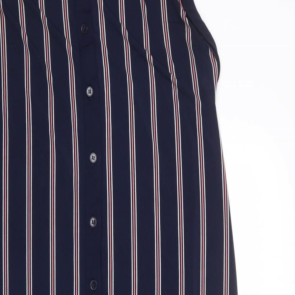 Oasis Womens Blue Striped Polyester Tank Dress Size XS Collared Button