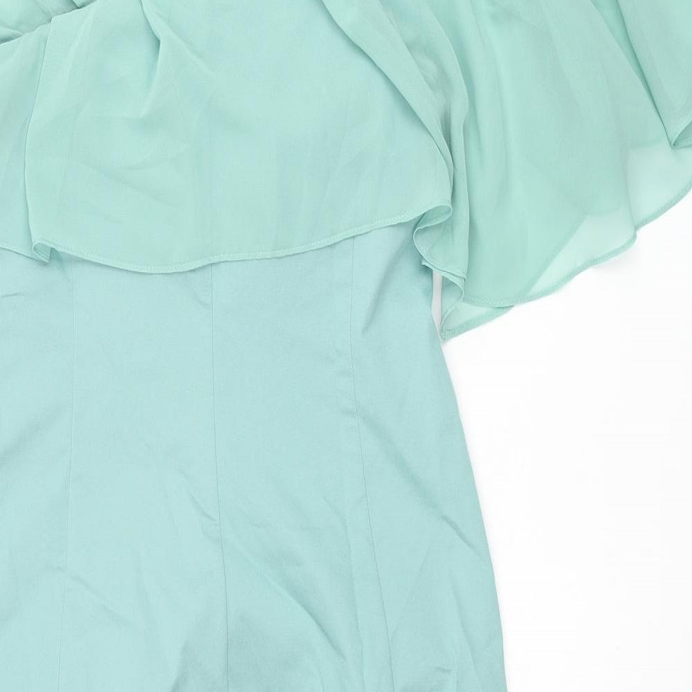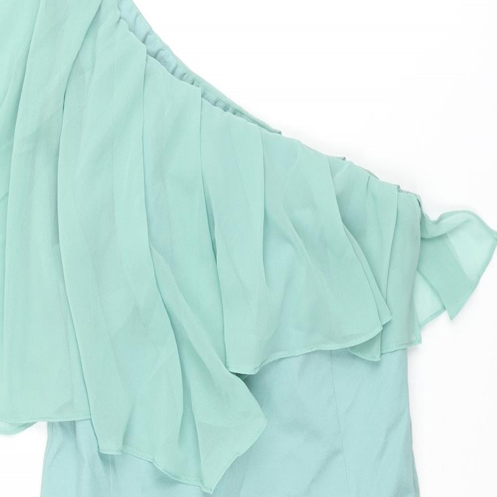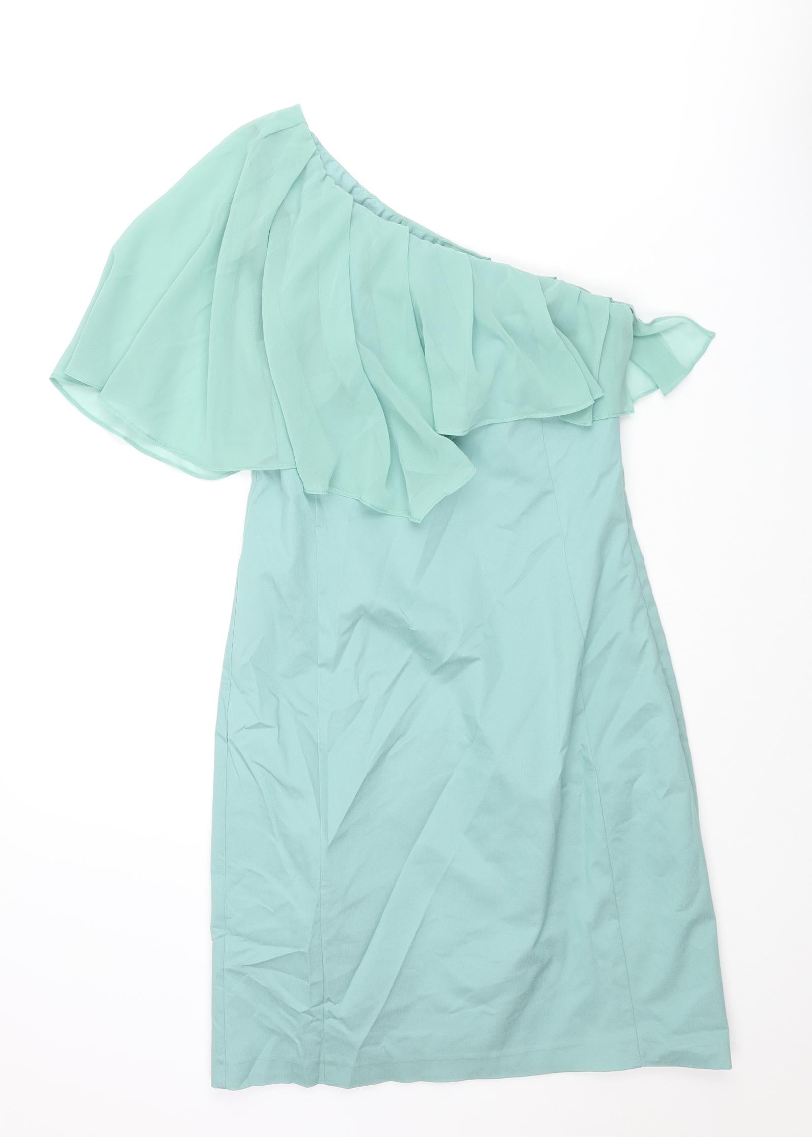 Oasis Womens Blue Viscose Bodycon Size 10 One Shoulder Zip - Frill